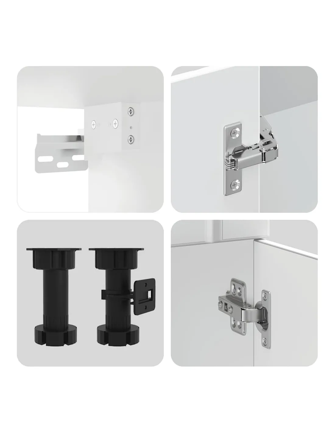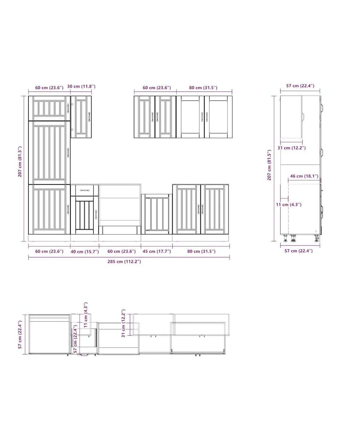 Cet ensemble de meubles de cuisine de 8 pièces, au design élégant, optimise votre espace de cuisine et offre un espace de rangement suffisant pour vos effets personnels ! Matériau stable et durable : le bois d'ingénierie est un matériau durable et stable dont la surface lisse résiste à l'humidité, à la déformation et au fendillement, ce qui en fait un choix fiable pour une grande variété de projets.Grand espace de rangement : l'ensemble d'armoires de cuisine comporte de nombreux compartiments et offre suffisamment d'espace pour ranger bols, assiettes, casseroles et autres appareils de cuisine.Pieds réglables : Les armoires inférieures sont dotées de pieds réglables qui peuvent être ajustés en hauteur pour s'adapter à l'agencement de votre cuisine.Facile à entretenir : grâce à leur surface lisse, ces armoires de cuisine sont faciles à nettoyer avec un chiffon humide et nécessitent moins d'entretien. Attention :Pour éviter qu'il ne bascule, ce produit doit être utilisé avec le dispositif de fixation murale fourni. Bon à savoir :Les vis et les chevilles pour l'intérieur du mur ne sont pas incluses. Recherchez et utilisez des vis et des chevilles adaptées à vos murs. Si vous n'êtes pas sûr, demandez conseil à un professionnel. Lisez et suivez attentivement chaque étape des instructions.Le plan de travail, l'évier et le robinet ne sont pas inclus dans la livraison.