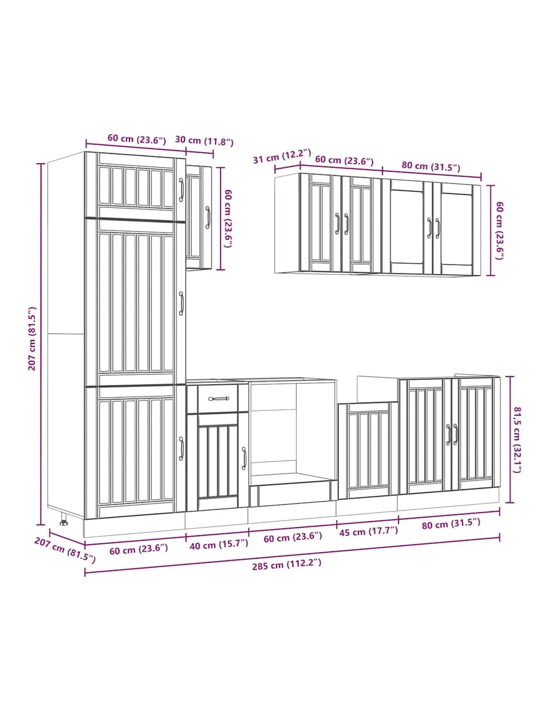 Ensemble d'armoires cuisine 8pcs Kalmar blanc bois d'ingénierie