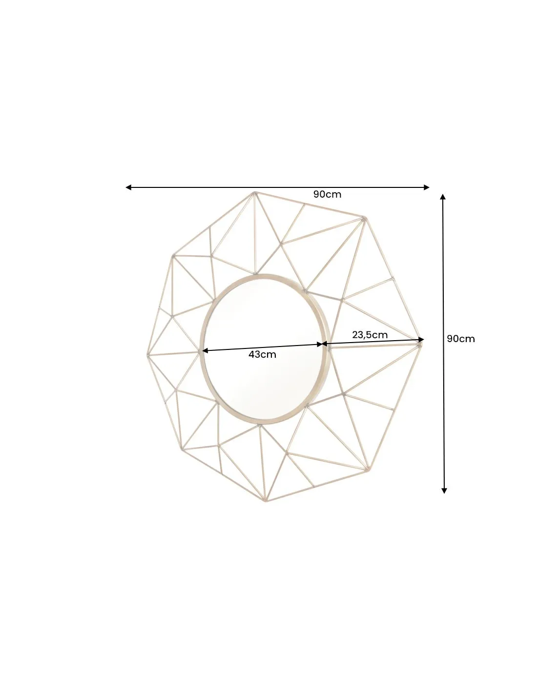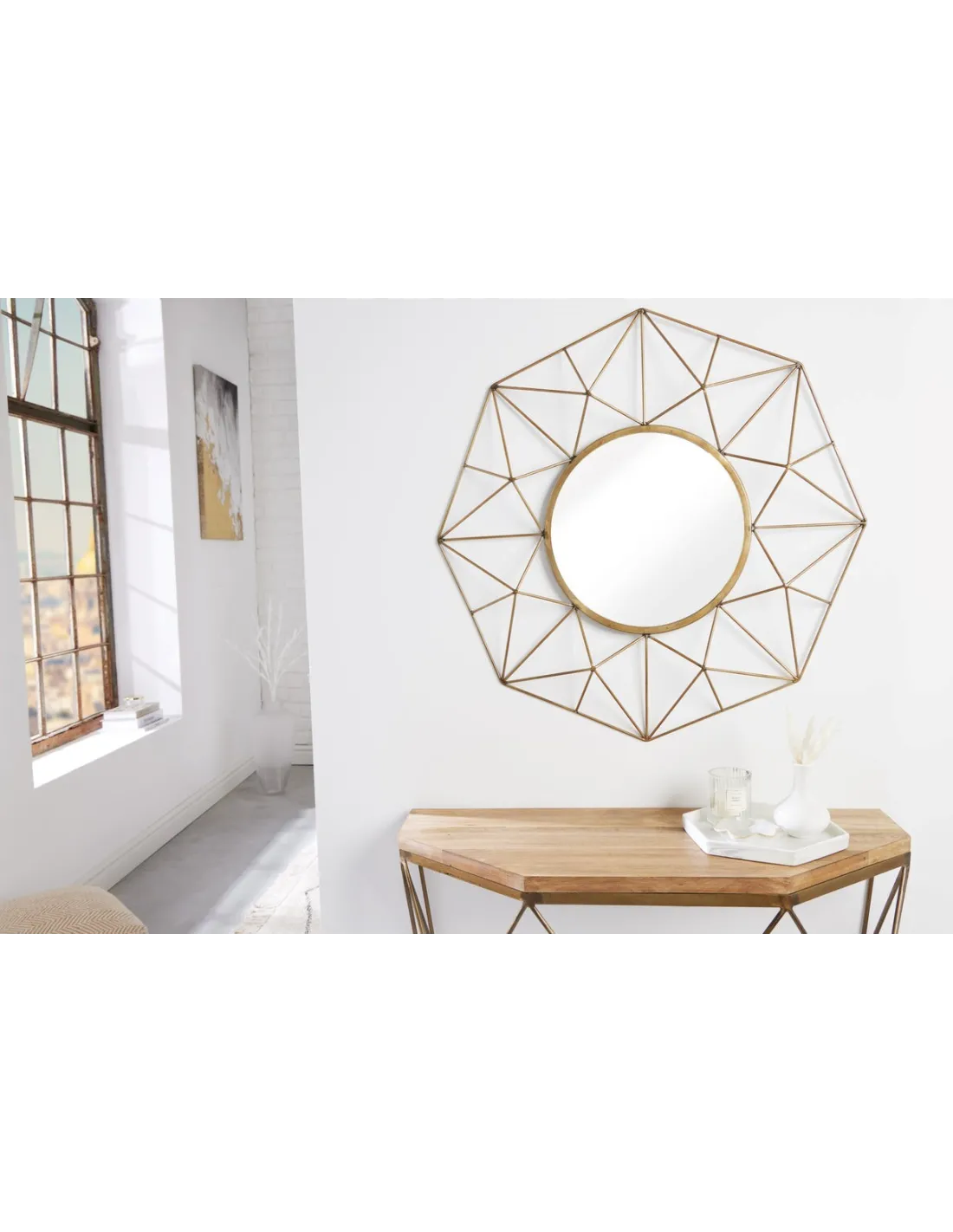Miroir Rond avec Cadre Polygone en Fil de Laiton - Fabriqué à la Main - 90cm