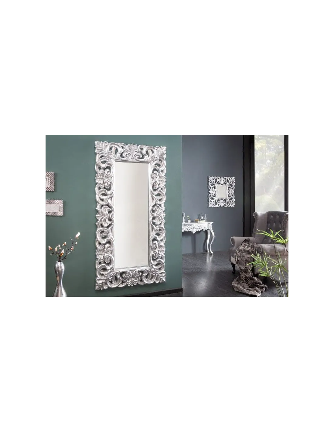 Miroir mural style baroque en polyrésine argenté 180cm