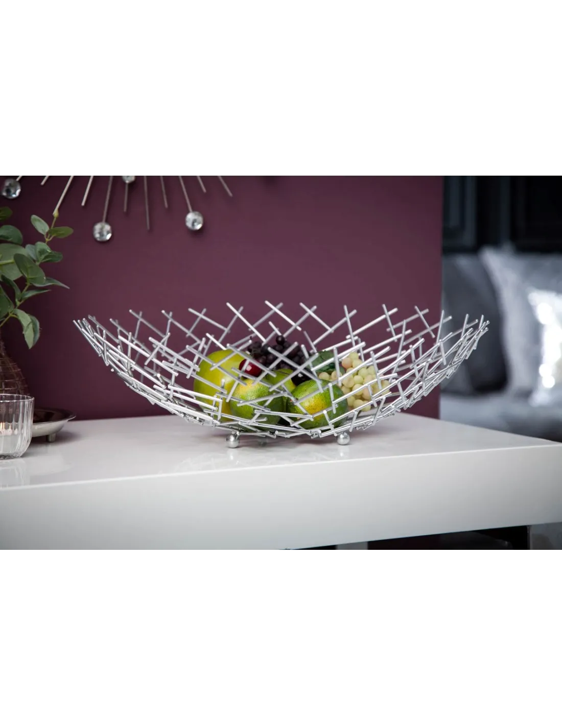Corbeille de fruit moderne en métal argenté
