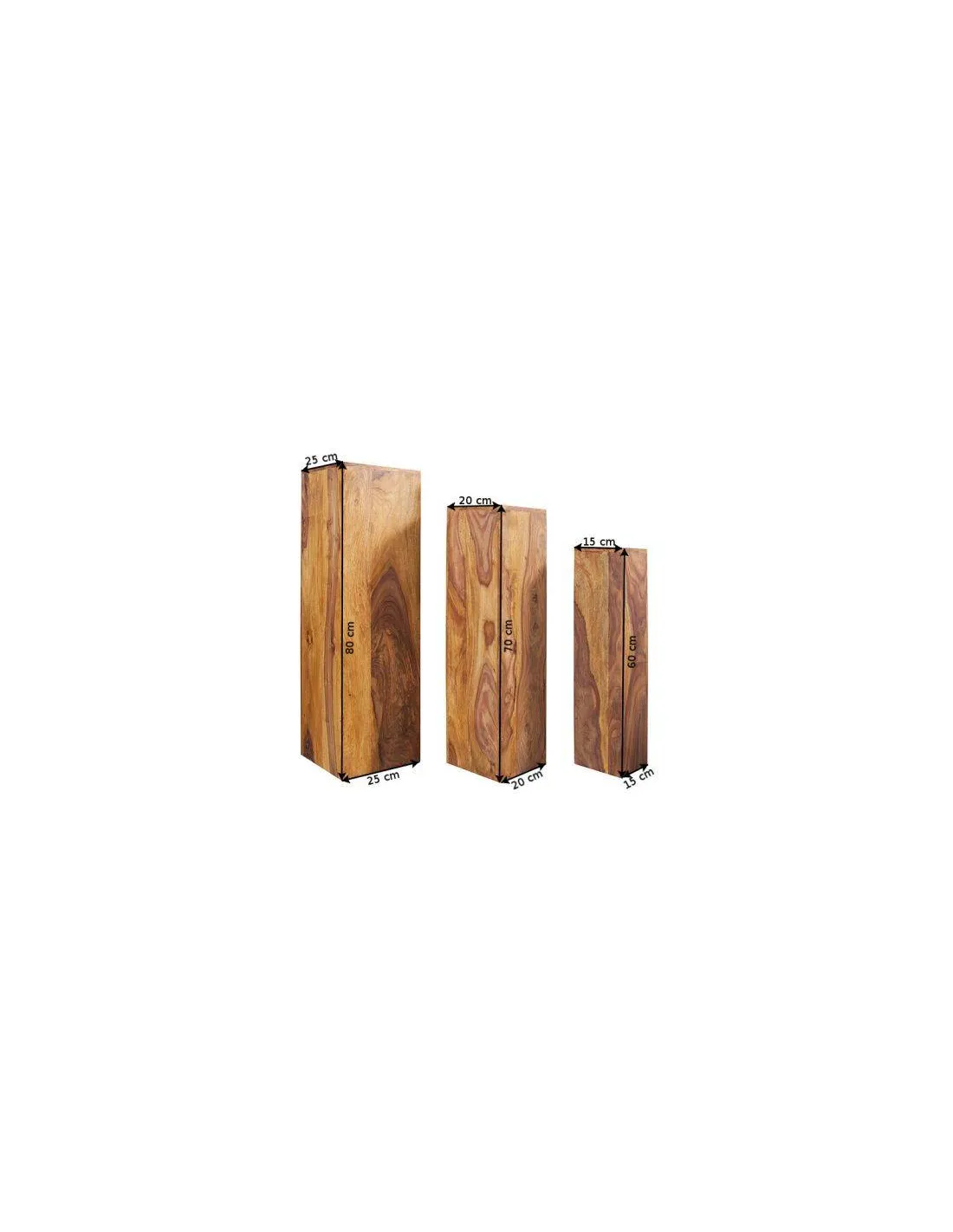 Meublez agréablement l'espace libre au sein de votre salon ou votre salle à manger en ajoutant ces 3 jolies colonnes décoratives réalisées joliment à la main en bois massif palissandre de couleur naturelle complétées par une finition miel qui donne une touche unique et très remarquable ! de plus, elle seront parfaites pour posé et mettre en valeur vos plus beaux objets décoratifs !