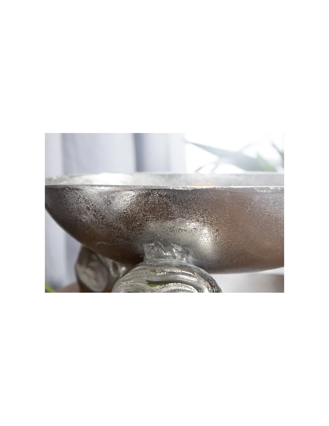 Présentez agréablement vos fruits grâce à ce bol argenté conçu en aluminium avec des pieds en forme de crâne humain qui représentent un style très original et unique, à poser merveilleusement dans une table de salle à manger, une enfilade ou même dans la cuisine afin d'ajouter une décoration exceptionnelle et esthétique qui va attirer l'attention de vos invités!Dimensions :L 35cmx H 15cmx P 35cm.