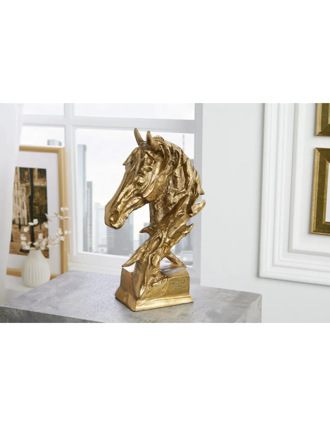 Sculpture tête de cheval Caballo 40cm or