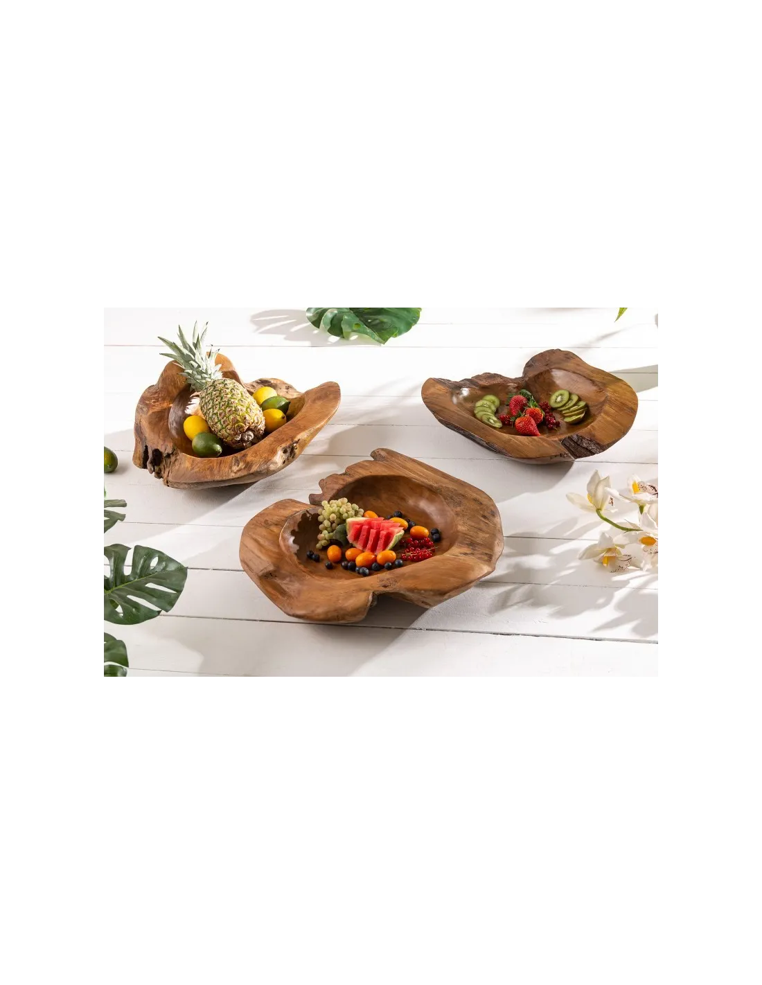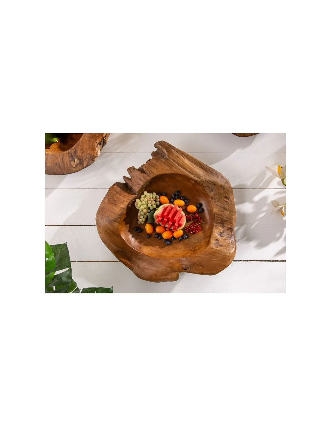 Corbeille de fruits design naturel en bois teck