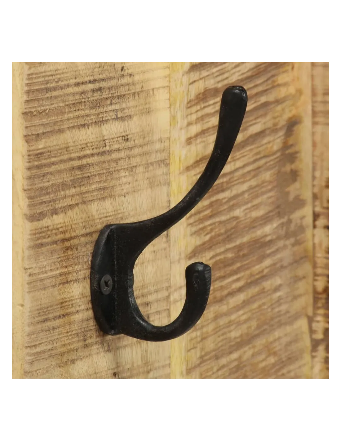 Cet ensemble de porte-manteaux de style vintage ajoutera une touche décorative ainsi que pratique à votre chambre. L'ensemble de porte-manteaux sera l'endroit idéal pour accrocher vos manteaux, chapeaux, sacs, écharpes, etc. Les porte-manteaux sont fabriqués en bois de manguier massif et sont très stables et durables. Le bois de manguier est un bois dur fort et dense qui a des belles stries et des contours bruns ou dorés sur sa surface. Le savoir-faire artisanal s'ajoute au style rétro spectaculaire de l'ensemble. Chaque étape du processus de fabrication est réalisée avec le plus grand soin, que ce soit le polissage, la peinture ou le laquage. L'ensemble peut être facilement monté au mur. La livraison comprend 2 porte-manteaux. Remarque importante : les couleurs et les grains de bois peuvent varier d'une pièce à l'autre, ce qui rend chaque pièce unique et légèrement différente l'une de l'autre ; la livraison est aléatoire.