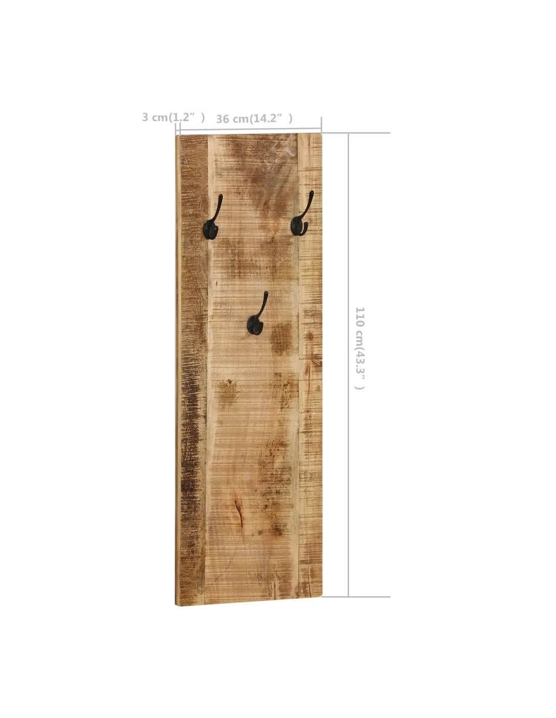 Porte-manteau mural 2 pcs Bois de manguier massif 36x110x3 cm