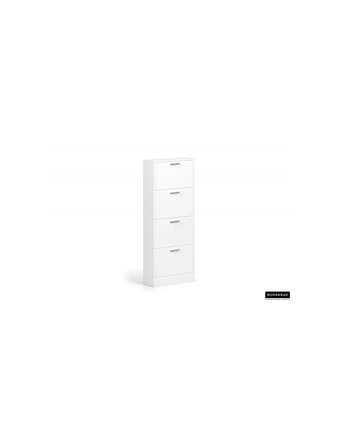 - Tiroirs basculants : Le meuble est équipé de 4 tiroirs basculants de 54 cm de large et 29 cm de profondeur, permettant de ranger plusieurs paires de chaussures en toute discrétion tout en facilitant l’accès.