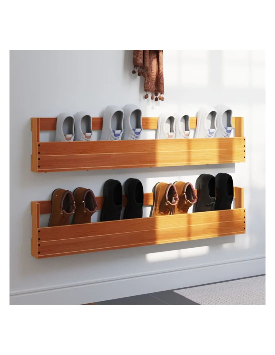 Gardez vos chaussures bien rangées et toujours à portée de main grâce à ces étagères à chaussures murales en bois ! Bois de pin massif : le bois de pin massif est un matériau naturel magnifique. Le bois de pin a un grain droit et les nœuds donnent au matériau son aspect caractéristique et rustique.Grand espace de rangement : ces étagères à chaussures murales peuvent fournir un grand espace de rangement pour garder toutes vos chaussures à portée de main.Design mural : les porte-chaussures peuvent être accrochés au mur. Ils évitent ainsi de prendre de la place au sol.Design tendance : les étagères à chaussures chics présentent des lignes épurées et un look minimaliste qui ajoutent une touche moderne à votre décor existant. Bon à savoir :Les vis et les chevilles pour l'intérieur du mur ne sont pas incluses. Nous vous conseillons de trouver et d'utiliser des vis et des chevilles adaptées spécifiquement à vos murs. Si vous n'êtes pas sûr, vous pouvez consulter un professionnel. Veuillez lire et suivre chaque étape des instructions.
