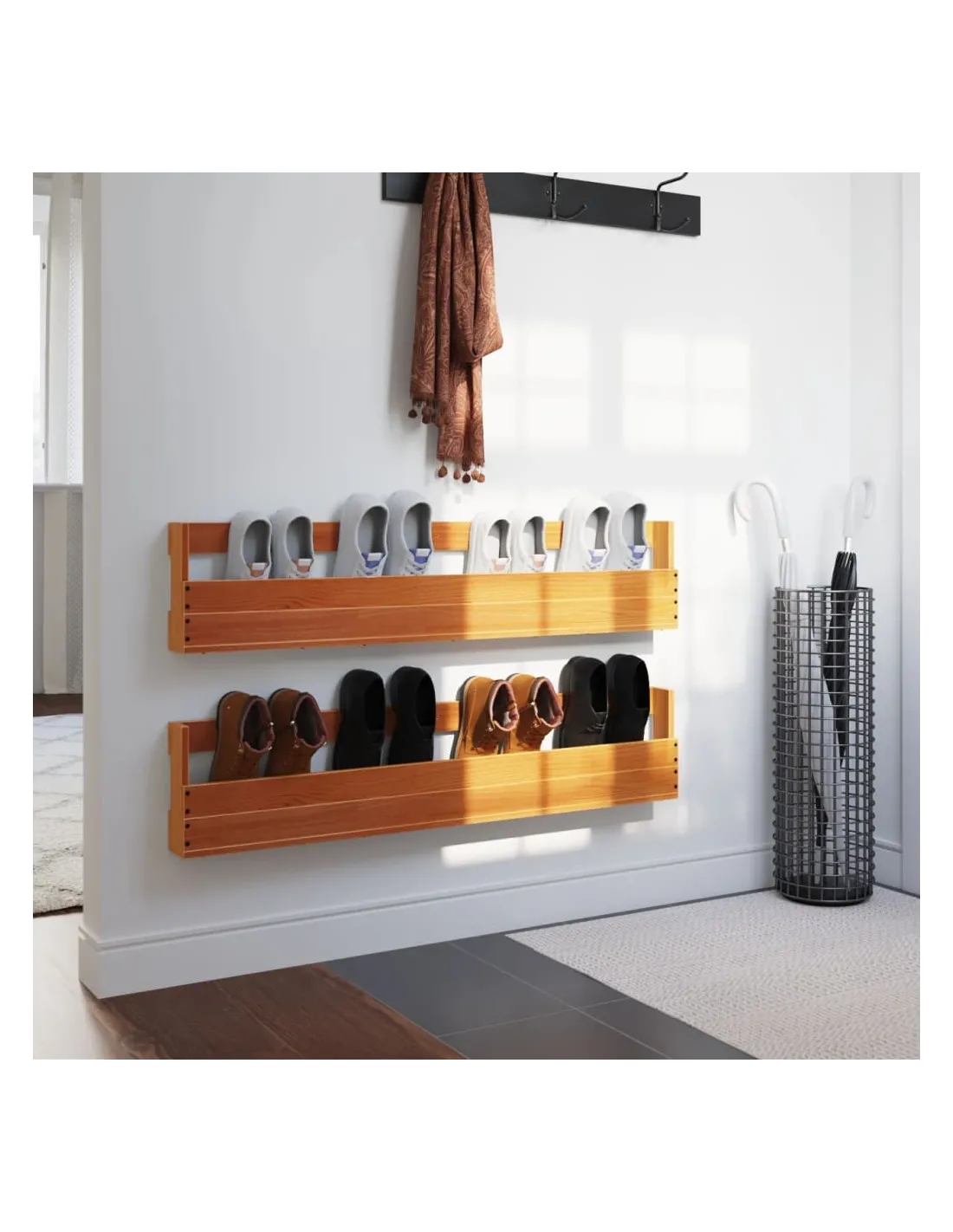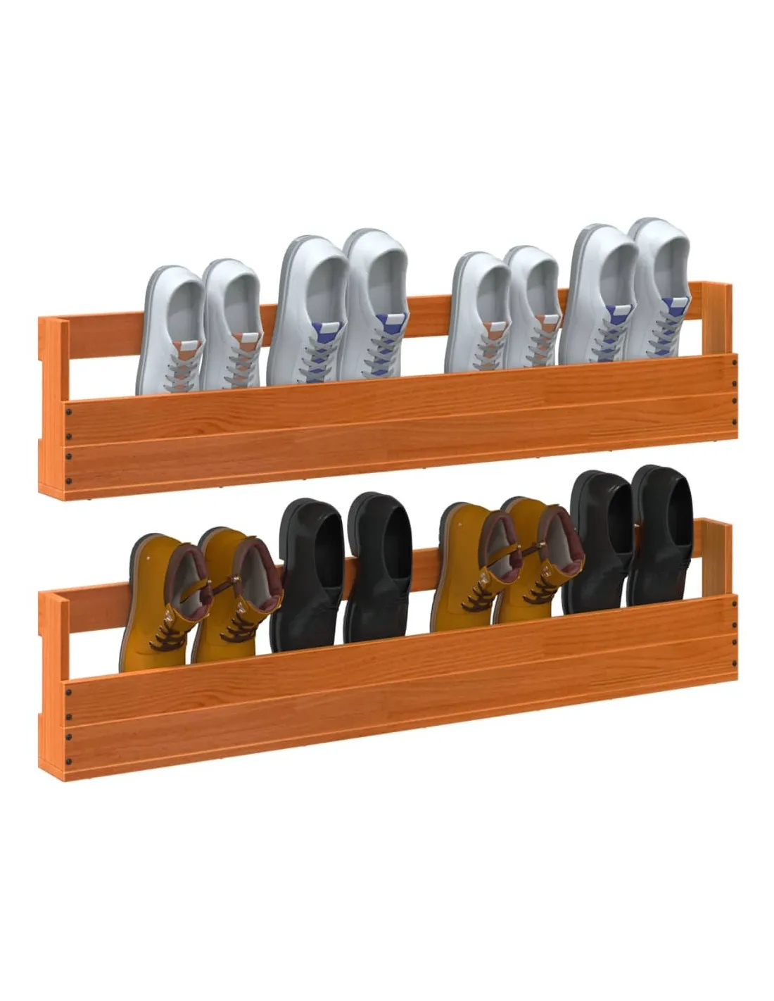 Étagères à chaussures murales 2 pcs cire marron 110x8,5x23,5 cm
