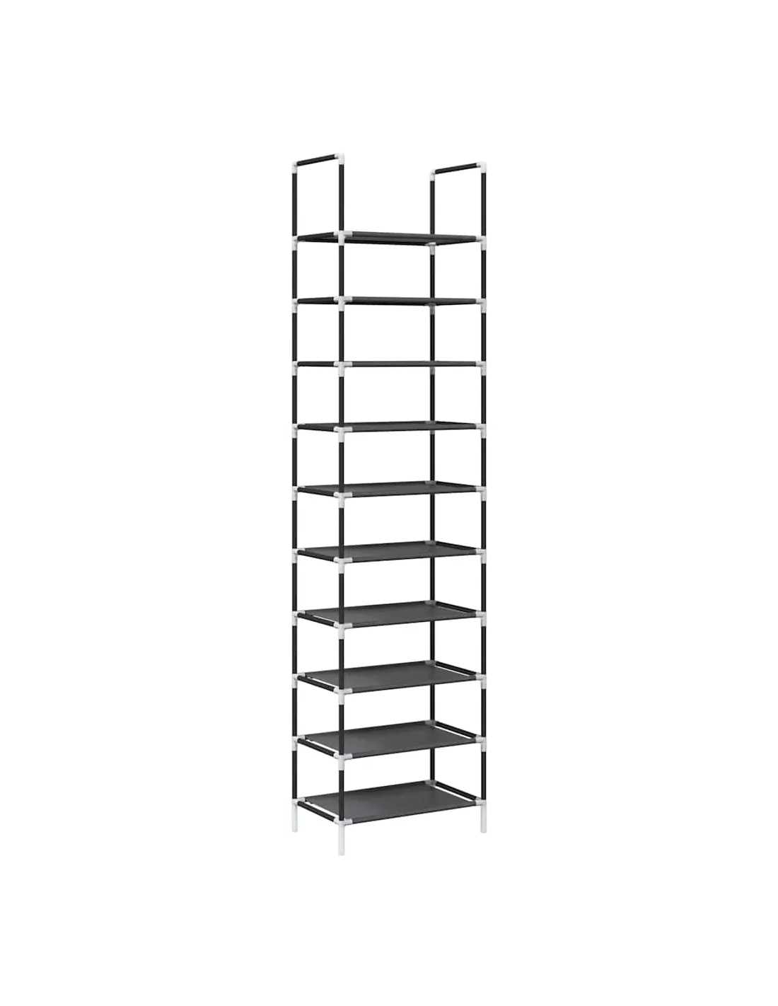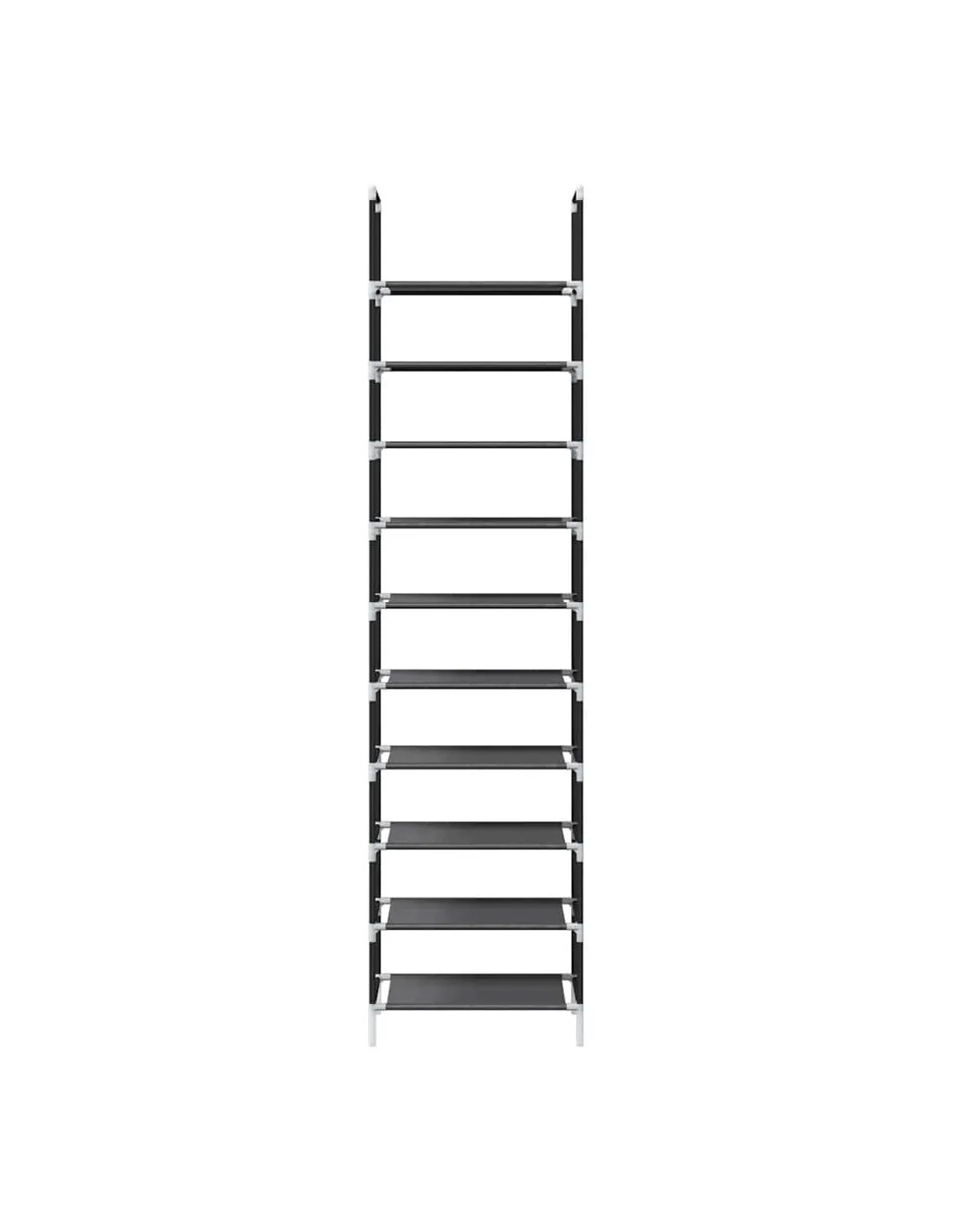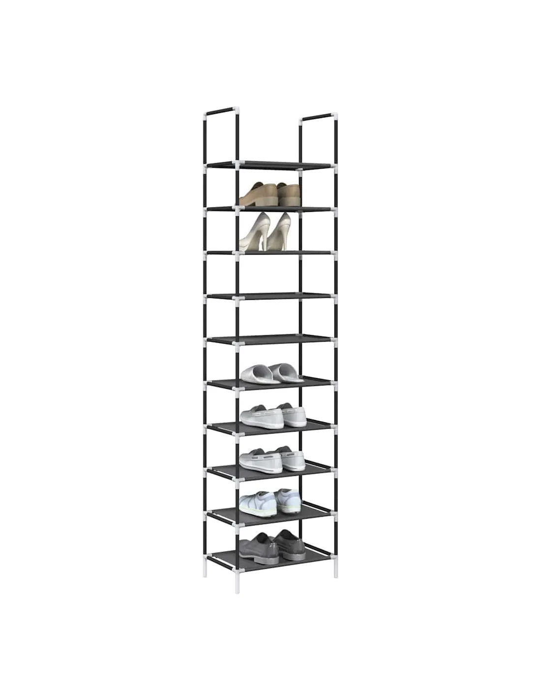 Gardez vos chaussures loin de l'encombrement pour créer un environnement bien rangé avec cette élégante étagère à chaussures ! Matériau respirant et durable : fabriquée en tissu non tissé, l'étagère est à la fois légère et solide, et offre une bonne respirabilité qui permet à vos chaussures de rester fraîches. Le matériau est résistant aux déchirures et peut être facilement nettoyé avec un chiffon humide, ce qui garantit une utilisation durable.Cadre robuste et stable : le cadre en acier enduit de poudre est solide, stable, durable et résistant à la corrosion et aux intempéries, ce qui garantit des performances durables.Grand espace de rangement : avec sa conception à 10 niveaux, ce rangement pour chaussures offre une capacité de stockage généreuse, vous permettant de garder toute votr