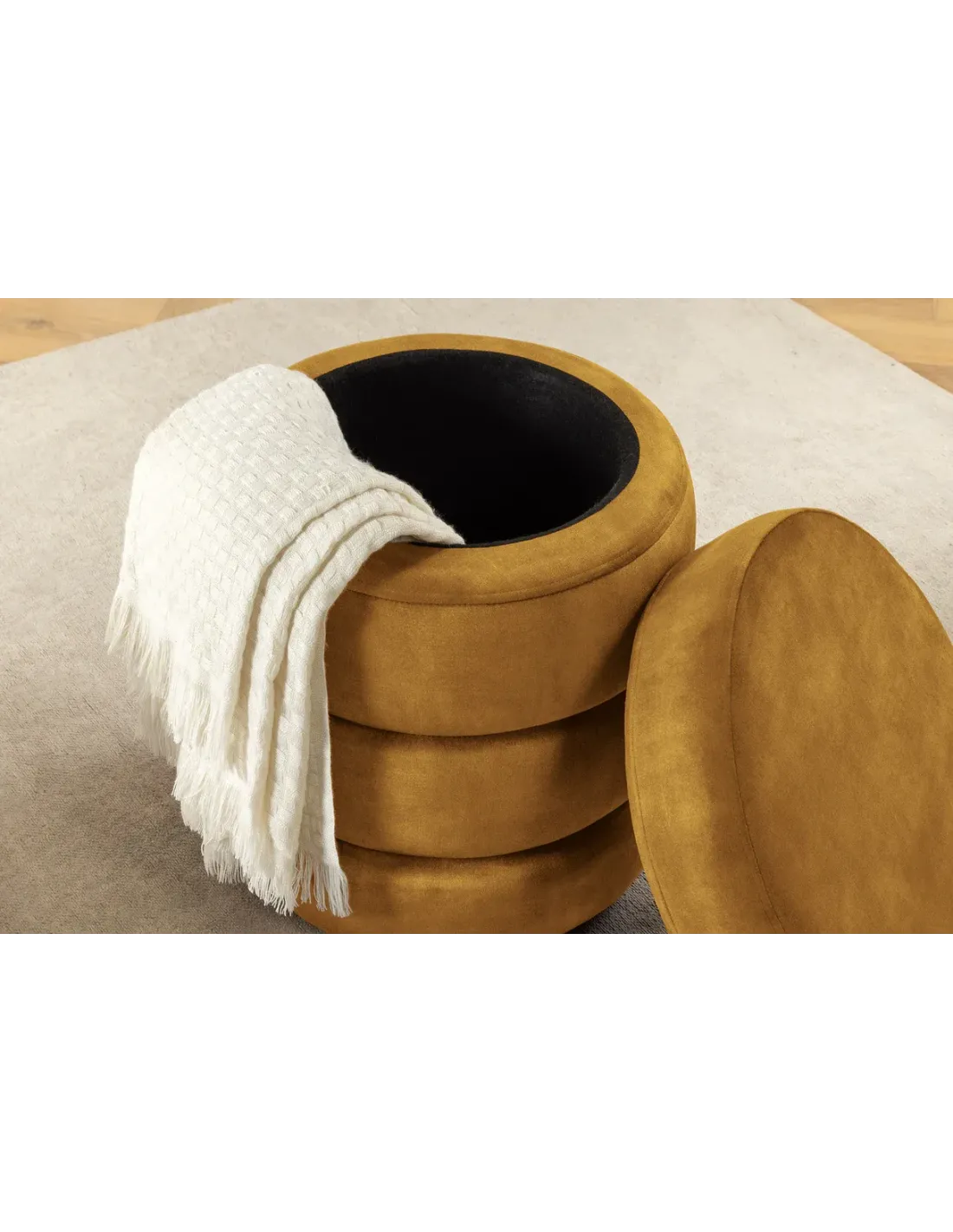Pratique et esthétique, le tabouret VOQUE en velours jaune moutarde est bien plus qu’un simple siège. Il combine style raffiné, confort d’assise et espace de rangement discret, pour répondre aux besoins des intérieurs modernes où chaque détail compte.
