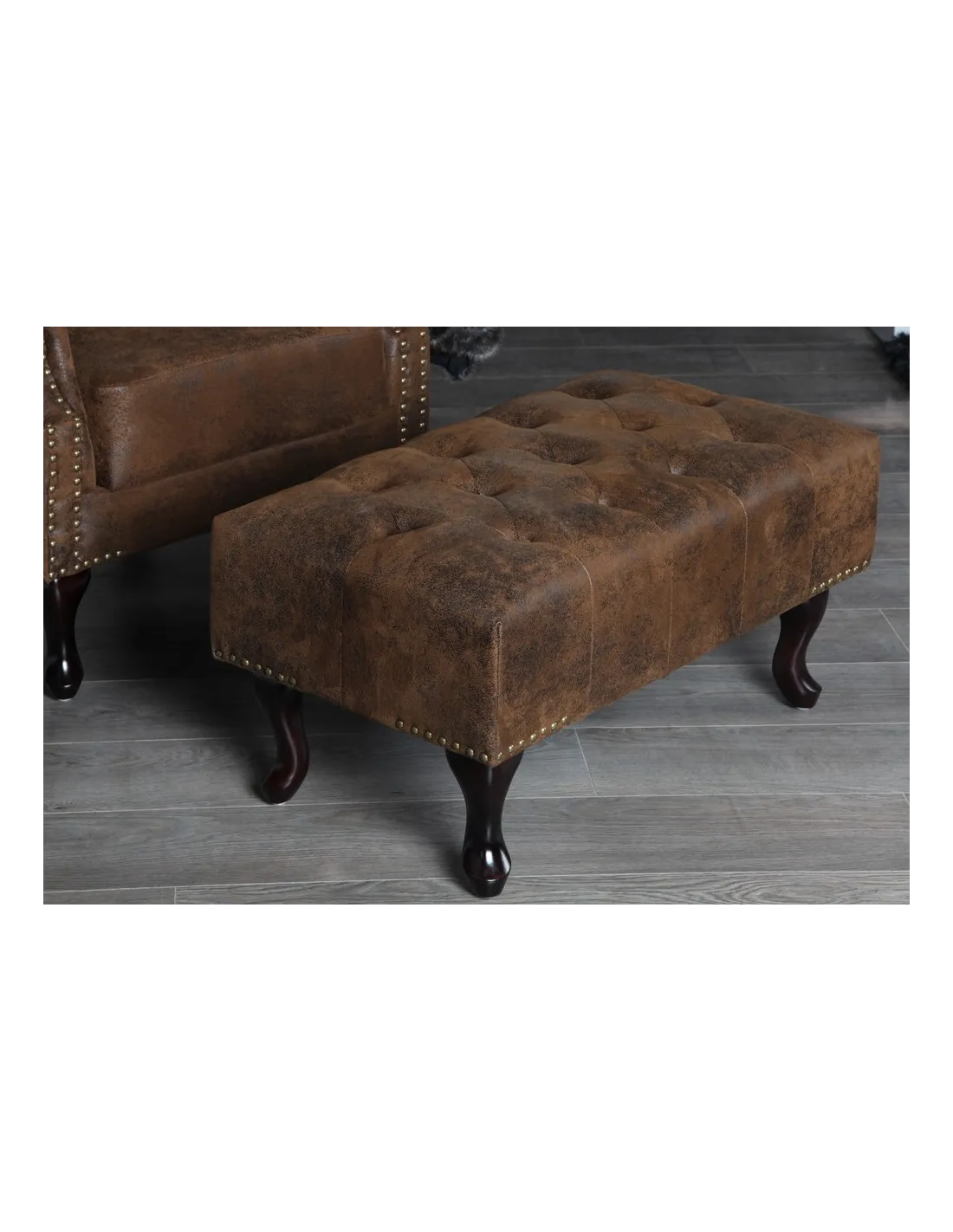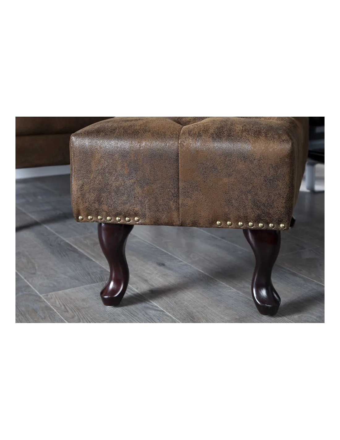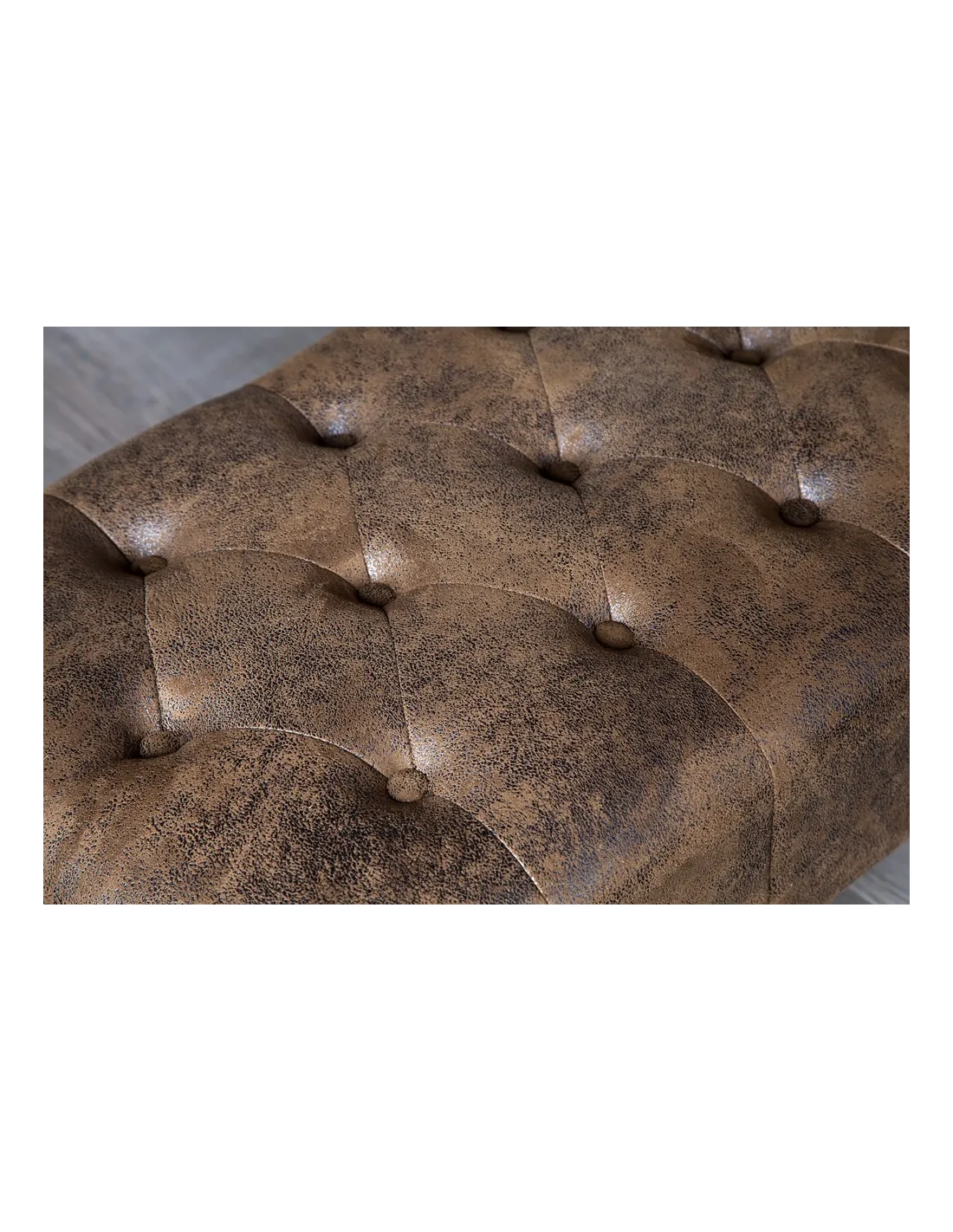 Pouf CHESTERFIELD marron antique en microfibre / bois massif