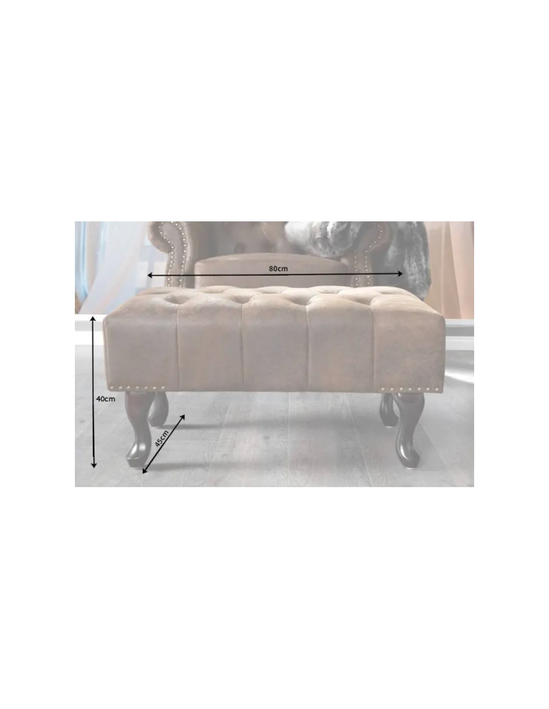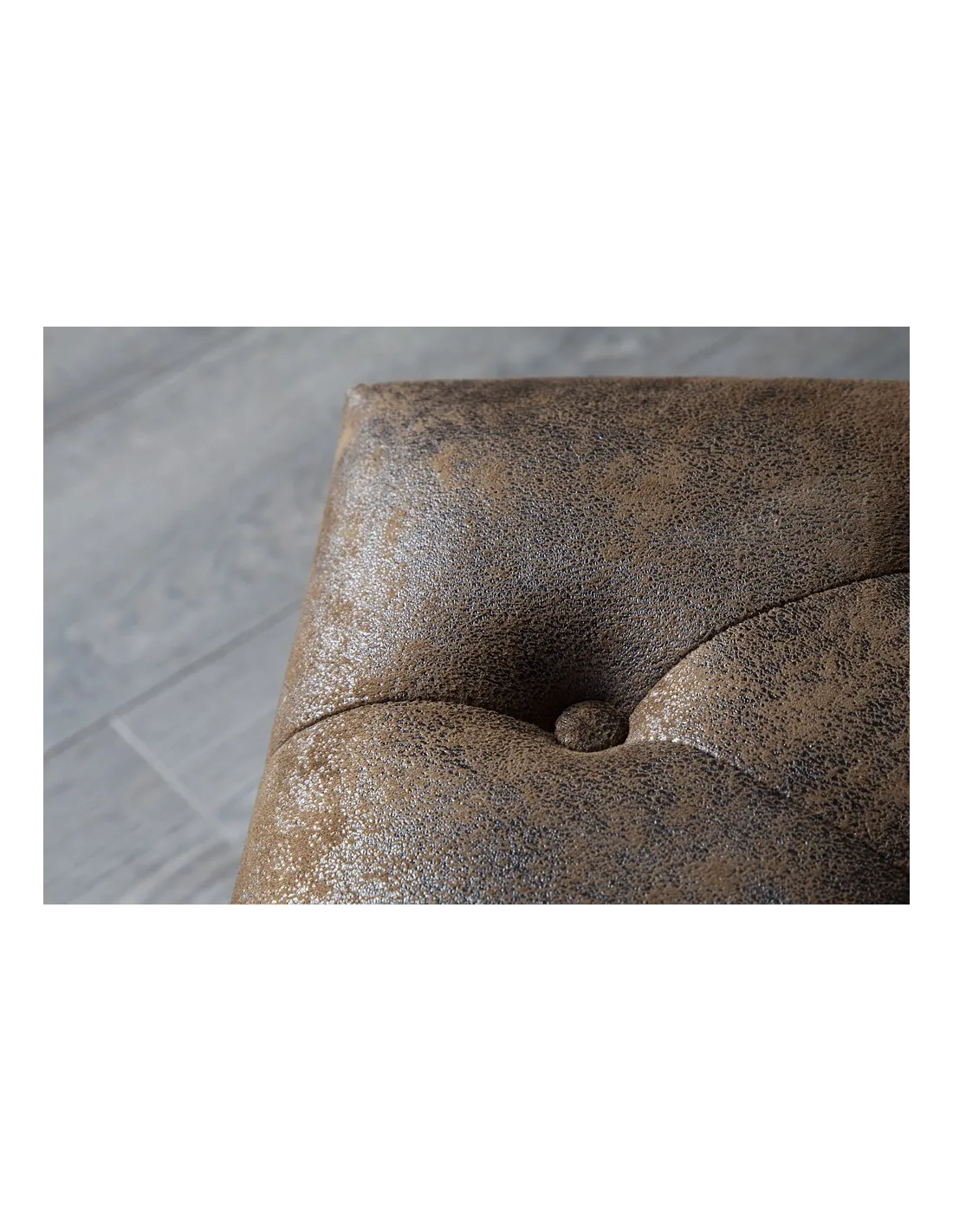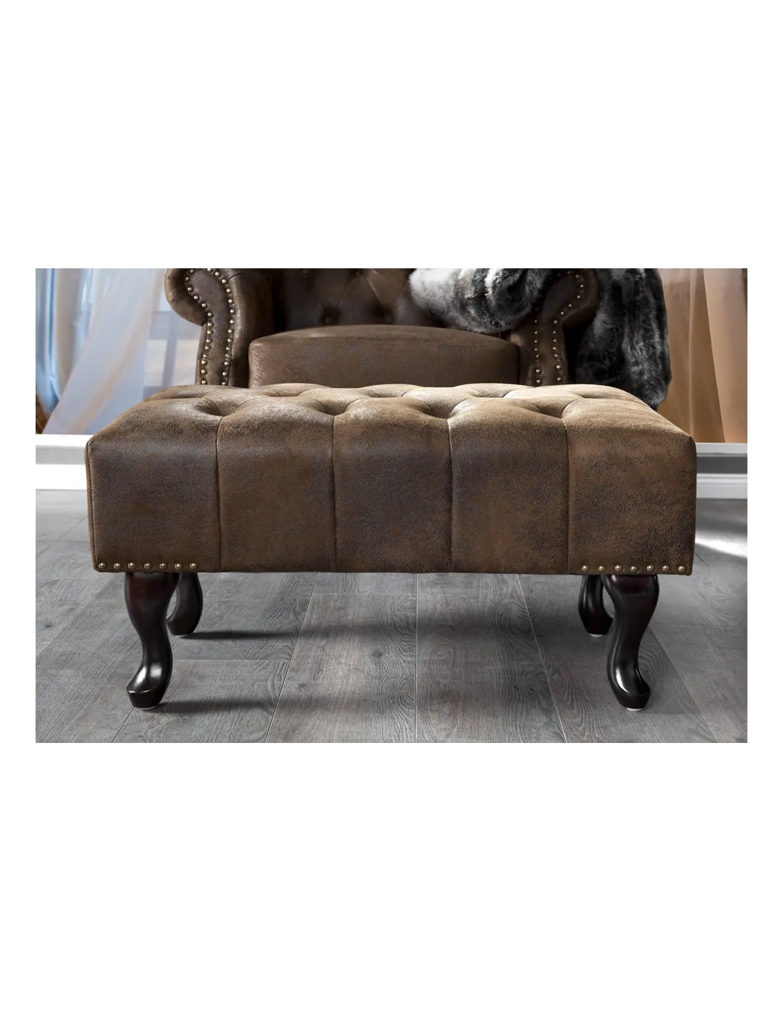 Pouf CHESTERFIELD marron antique en microfibre / bois massif