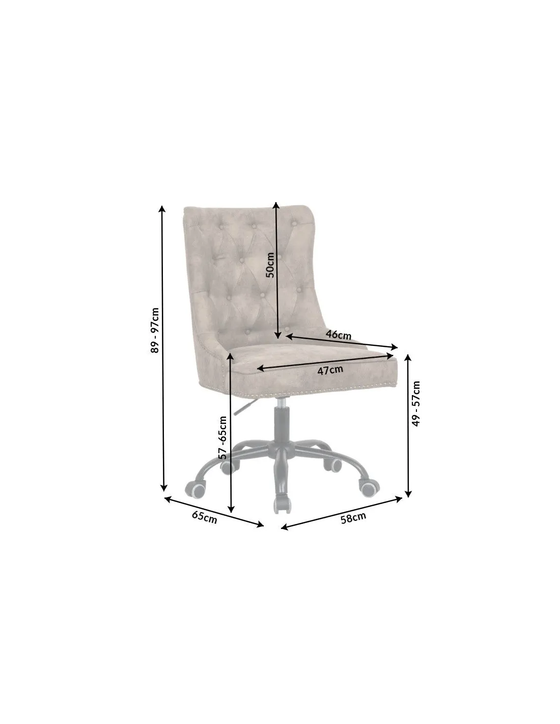 Chaise de bureau VICTORIAN 49-57cm - Style Chesterfield en Microfibre Marron Clair