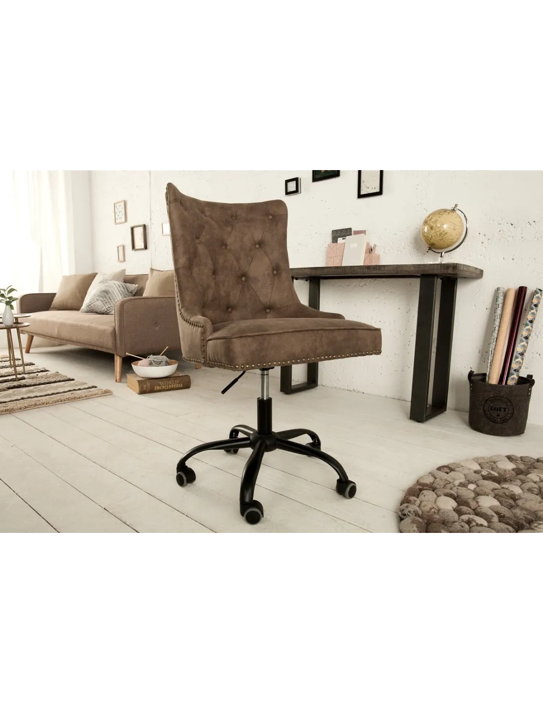 Offrez à votre espace de travail un mélange parfait d'élégance et de confort avec la chaise de bureau VICTORIAN. Inspirée du style Chesterfield, cette chaise en microfibre marron clair s’intègre harmonieusement dans un intérieur classique ou contemporain.