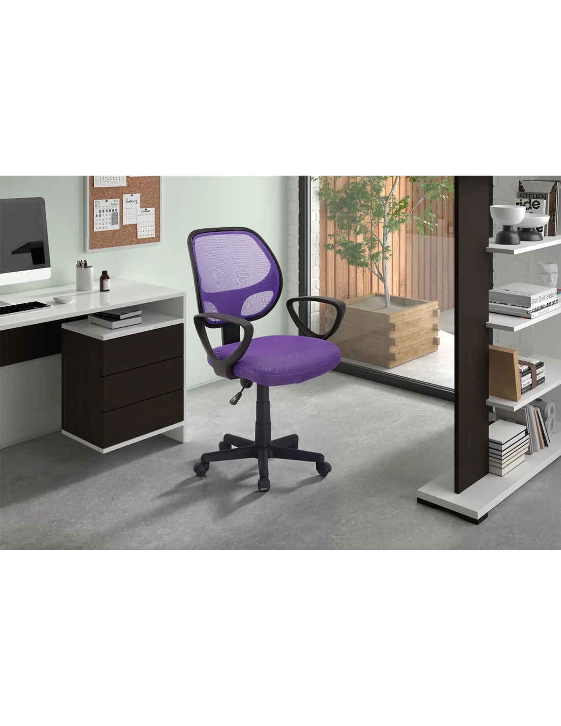 Chaise de bureau style roulant en tissu coloris violet
