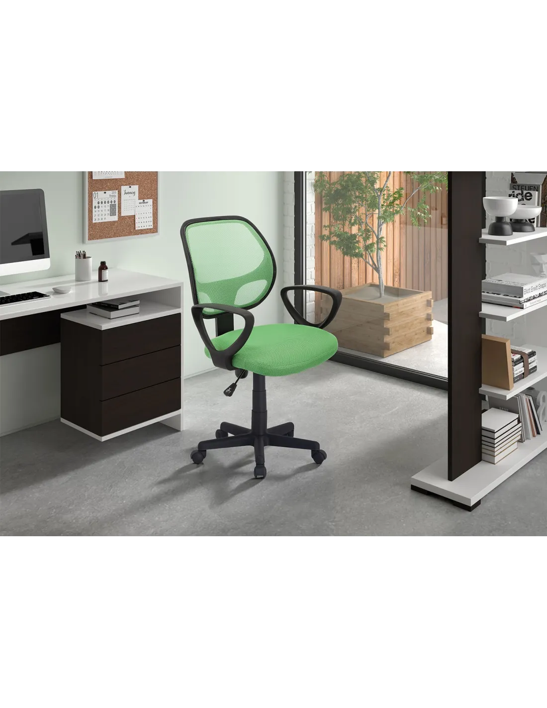 Chaise de bureau style roulant en tissu coloris vert