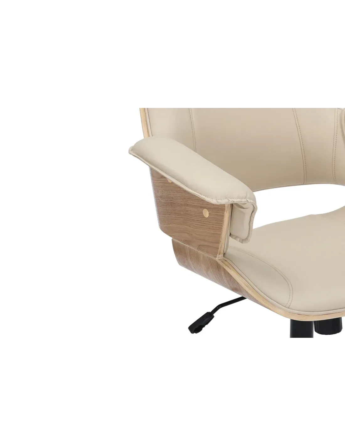 Chaise de bureau Manhattan – Similicuir beige crème & bois de chêne