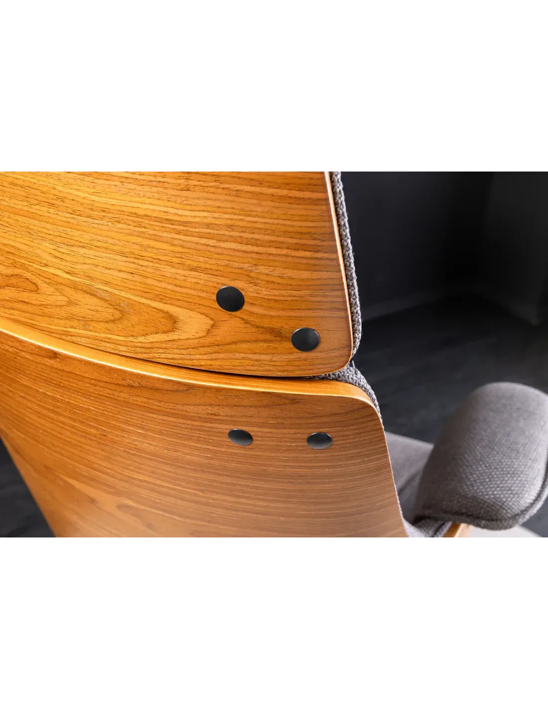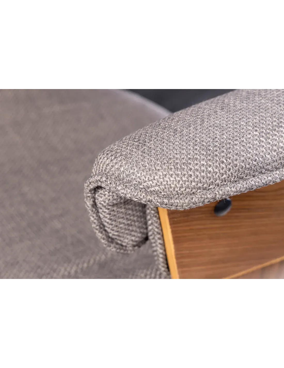Design raffiné combinant tissu texturé et bois de noyer.