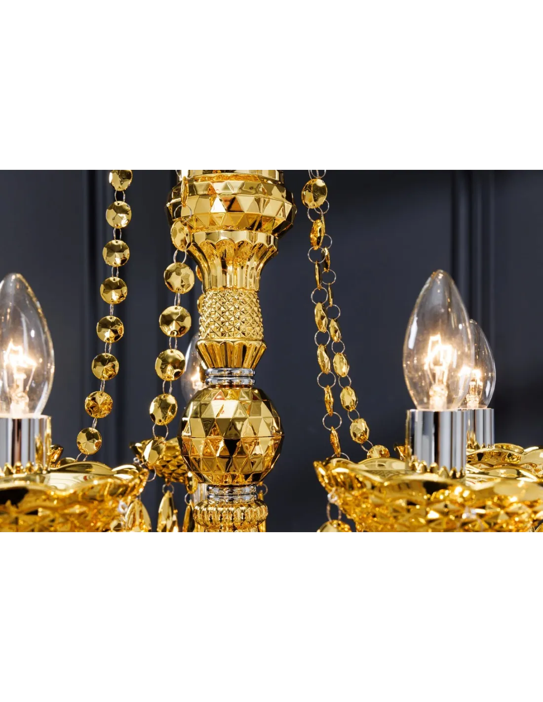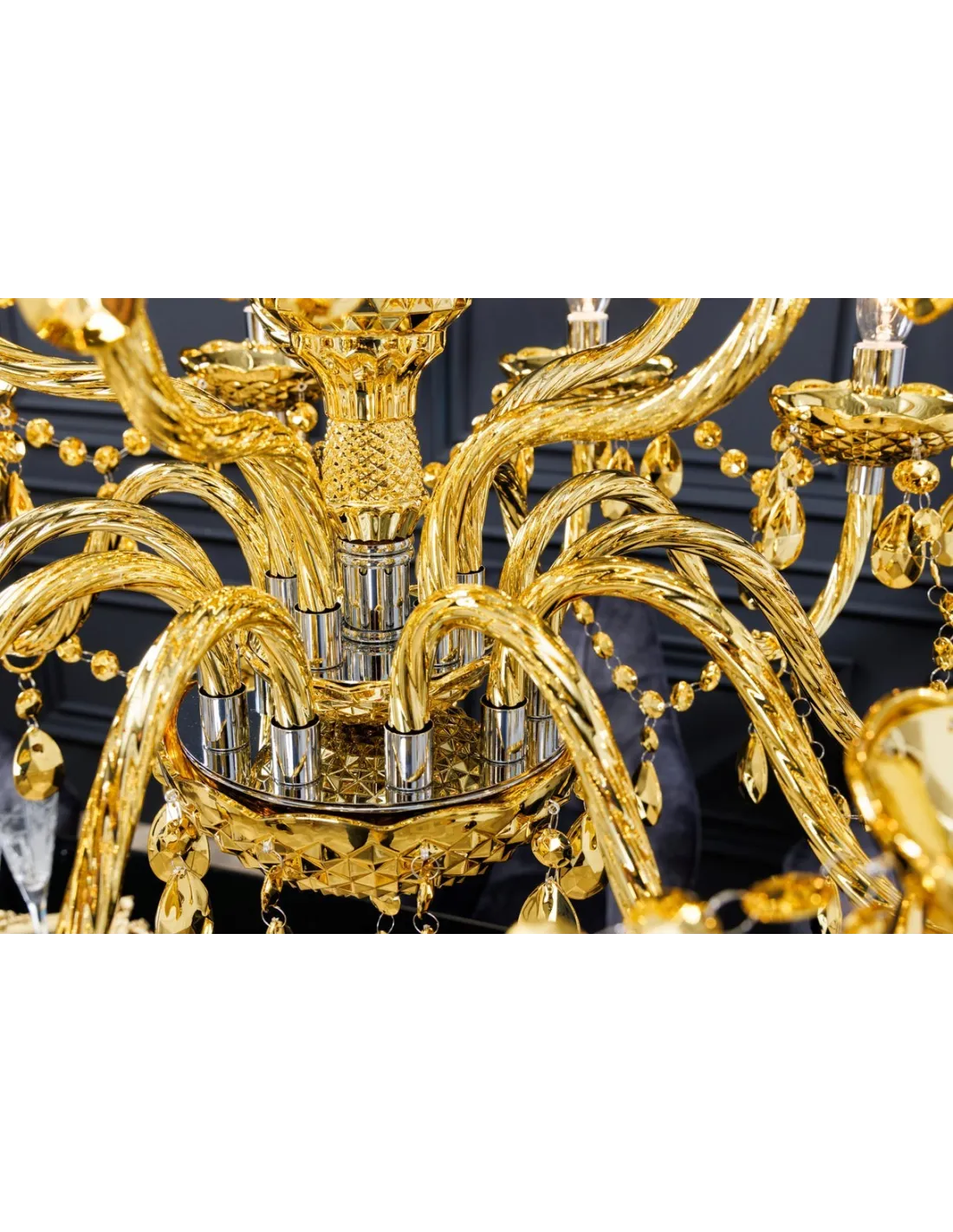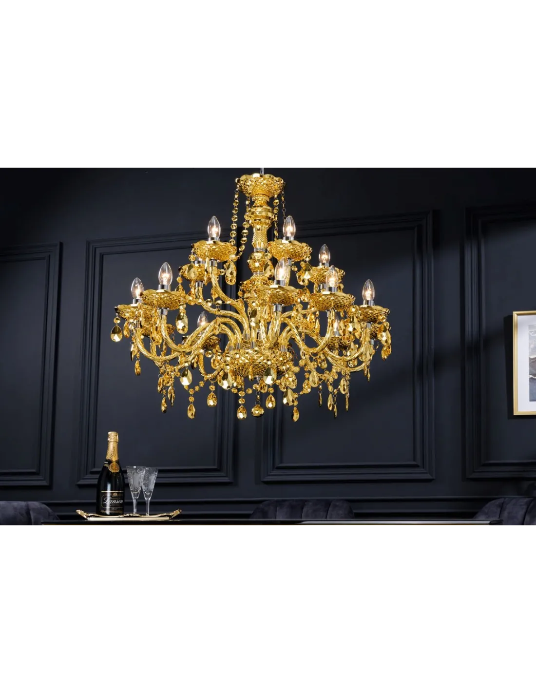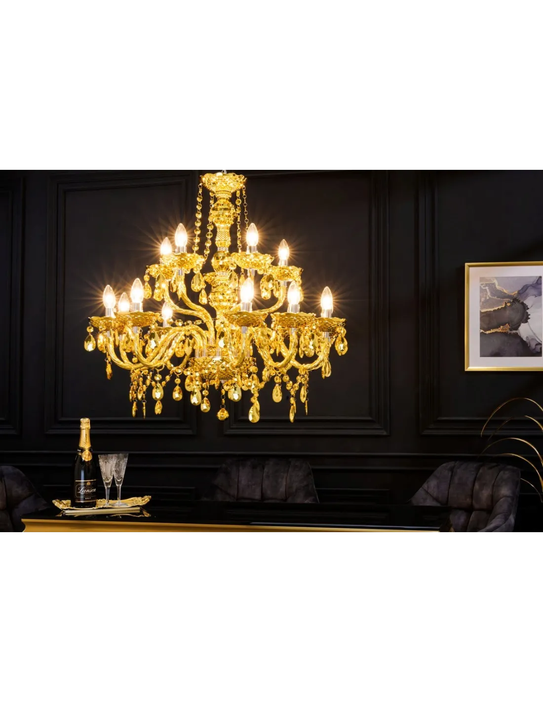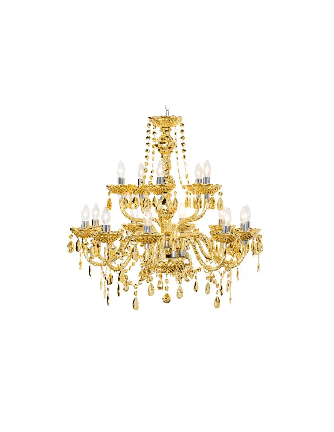 Lampe Suspendue Lustre Cristal Coloris Or 80cm 15 bras