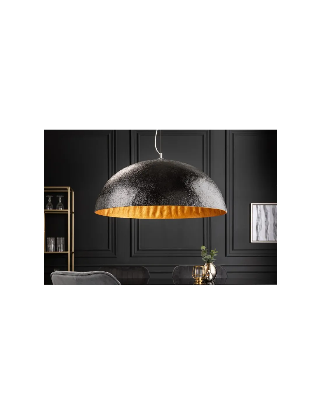 Suspension STUDIO 55 cm – Noir & Argent – Design moderne et industriel