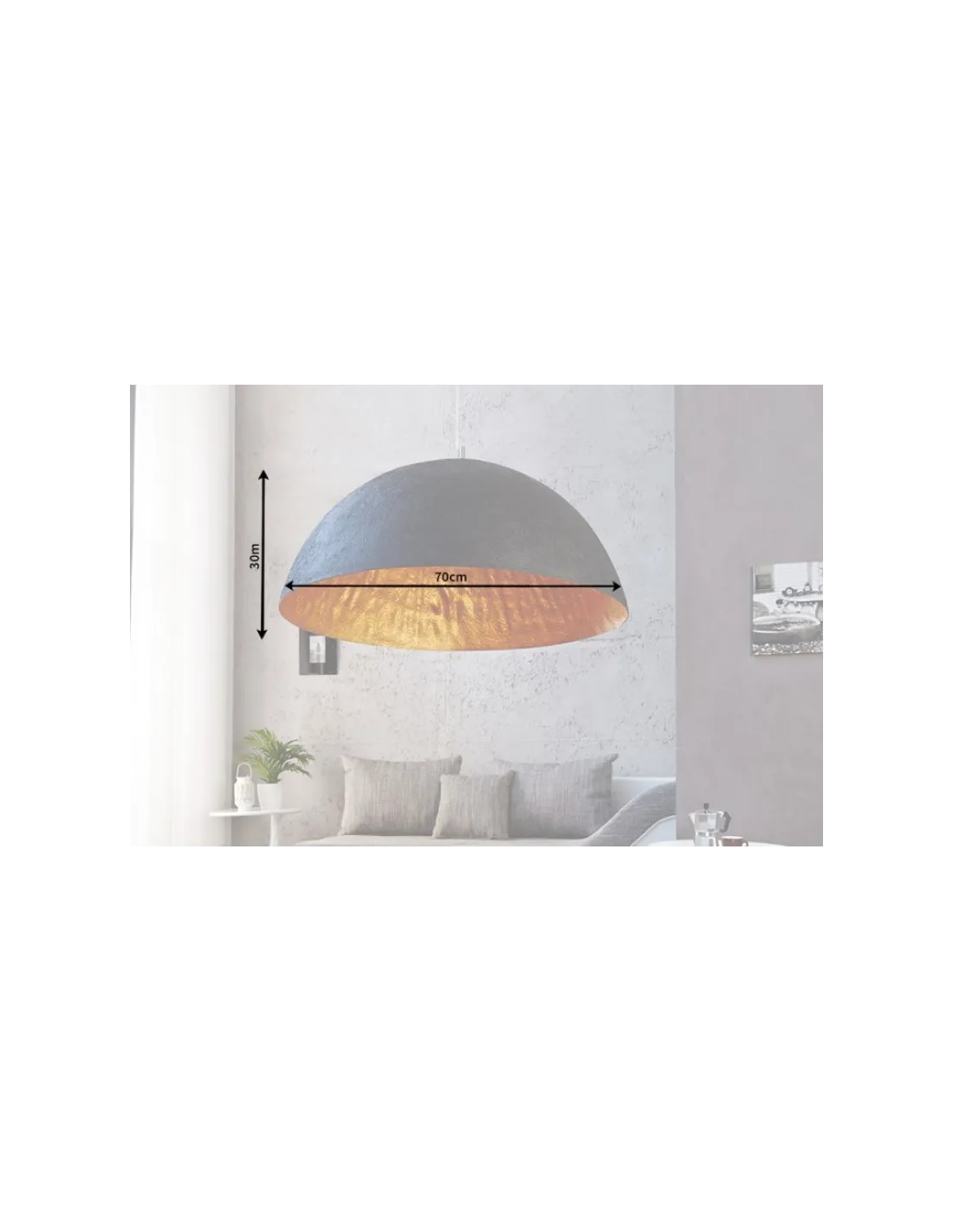 Apportez une atmosphère particulièrement chaleureuse et conviviale à votre salle à manger ou salon avec la suspension design GLOW. Son large abat-jour, en forme de demi-sphère, est fabriqué en fibre de verre et en matériaux composites. Grâce à son réflecteur intérieur doré à l’effet antique, il diffuse une lumière indirecte aux teintes semblables à celles du soleil.