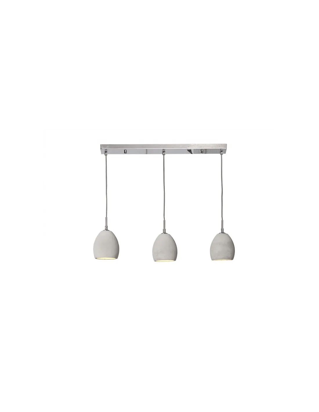 Une lampe suspendue-ensemble de 3 lampes- grise en béton et métal chromé ajoutera un style simple et chic à votre intérieur.