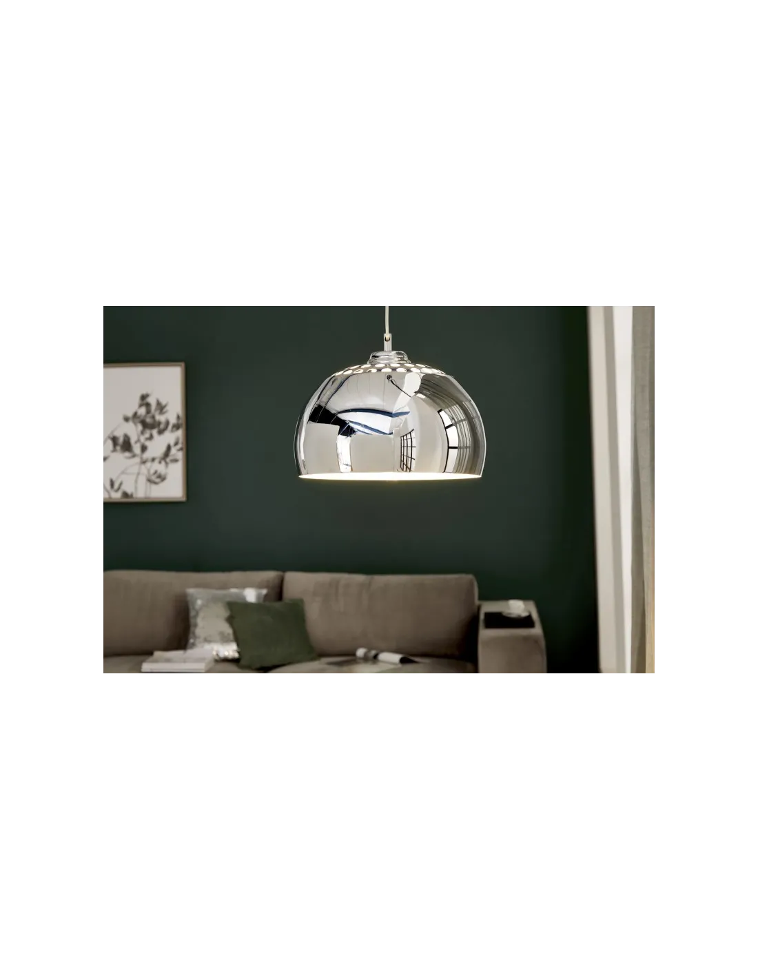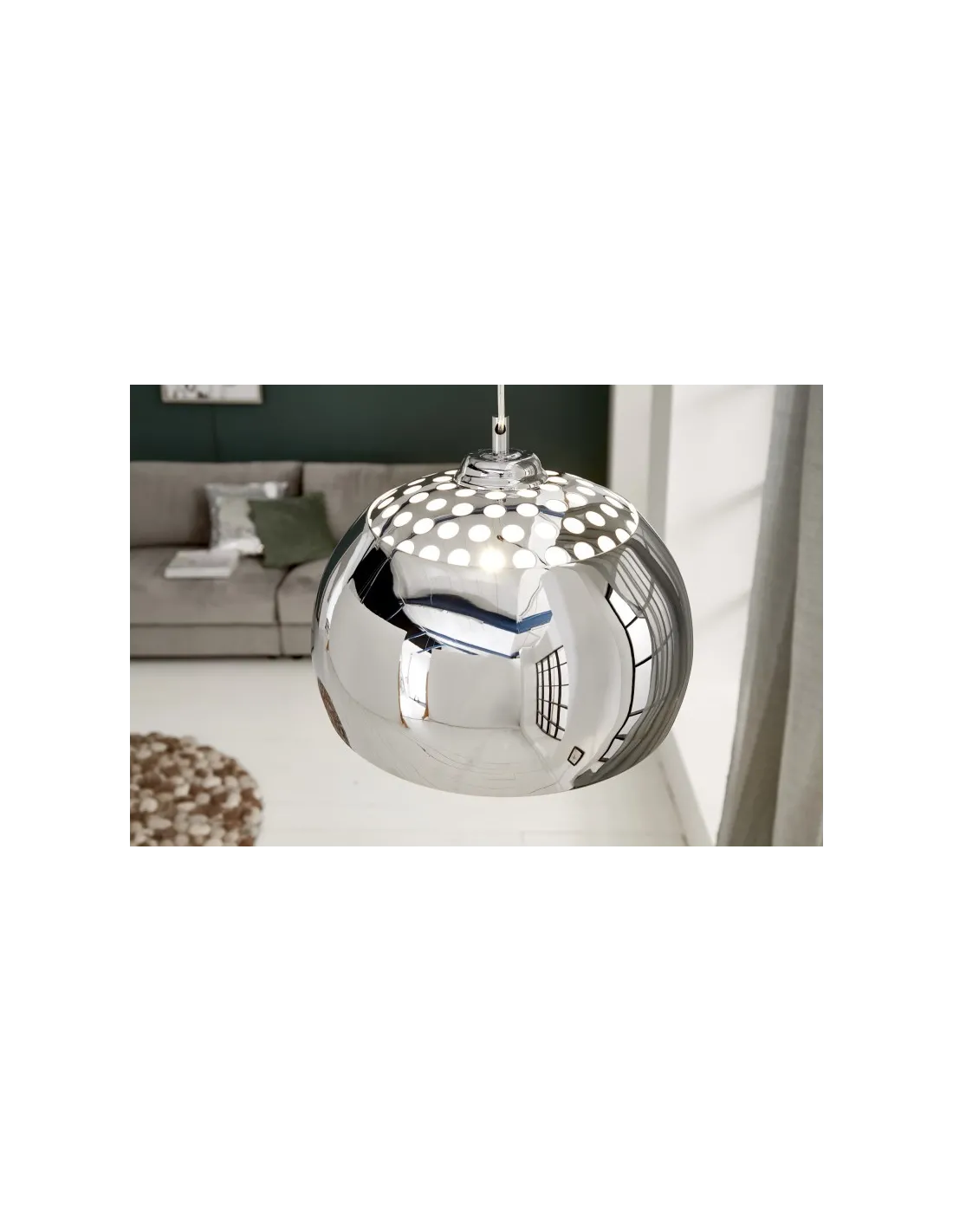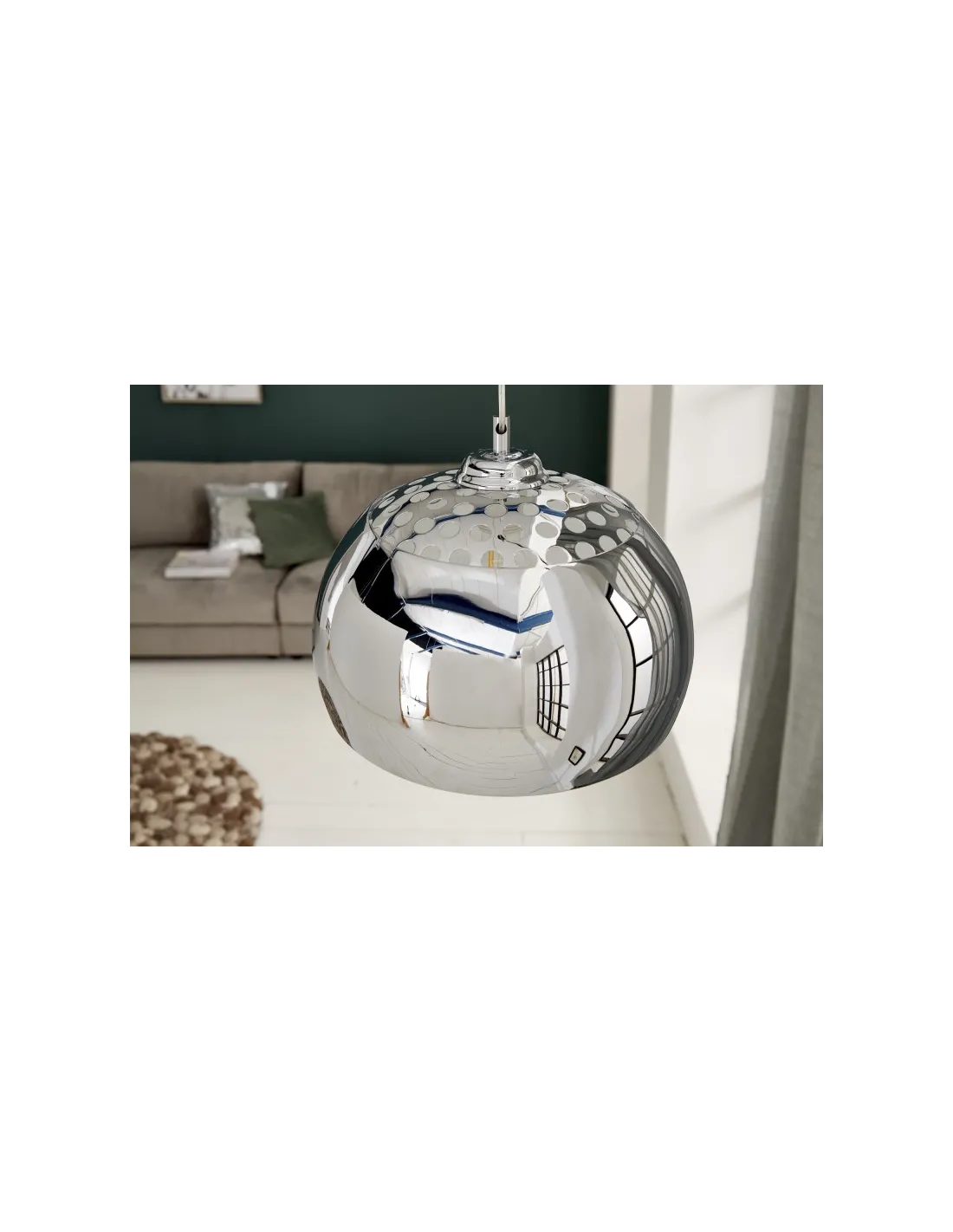 Une lampe suspendue design boule en métal chromé offre une atmosphère ultra design et chic à votre intérieur.