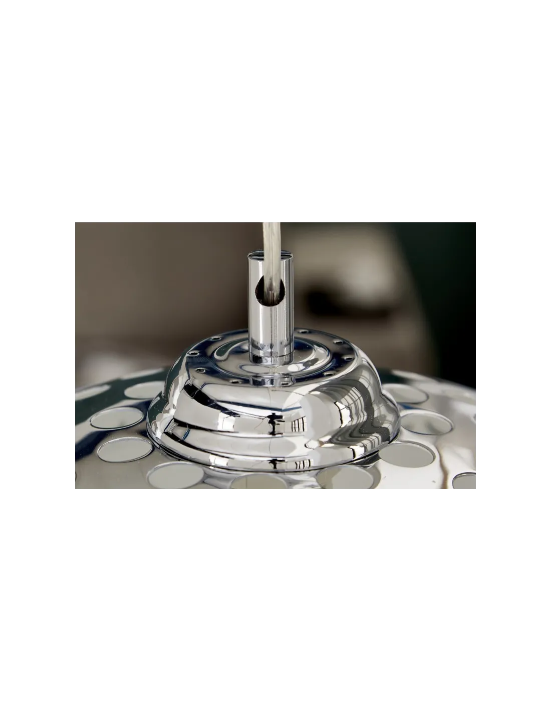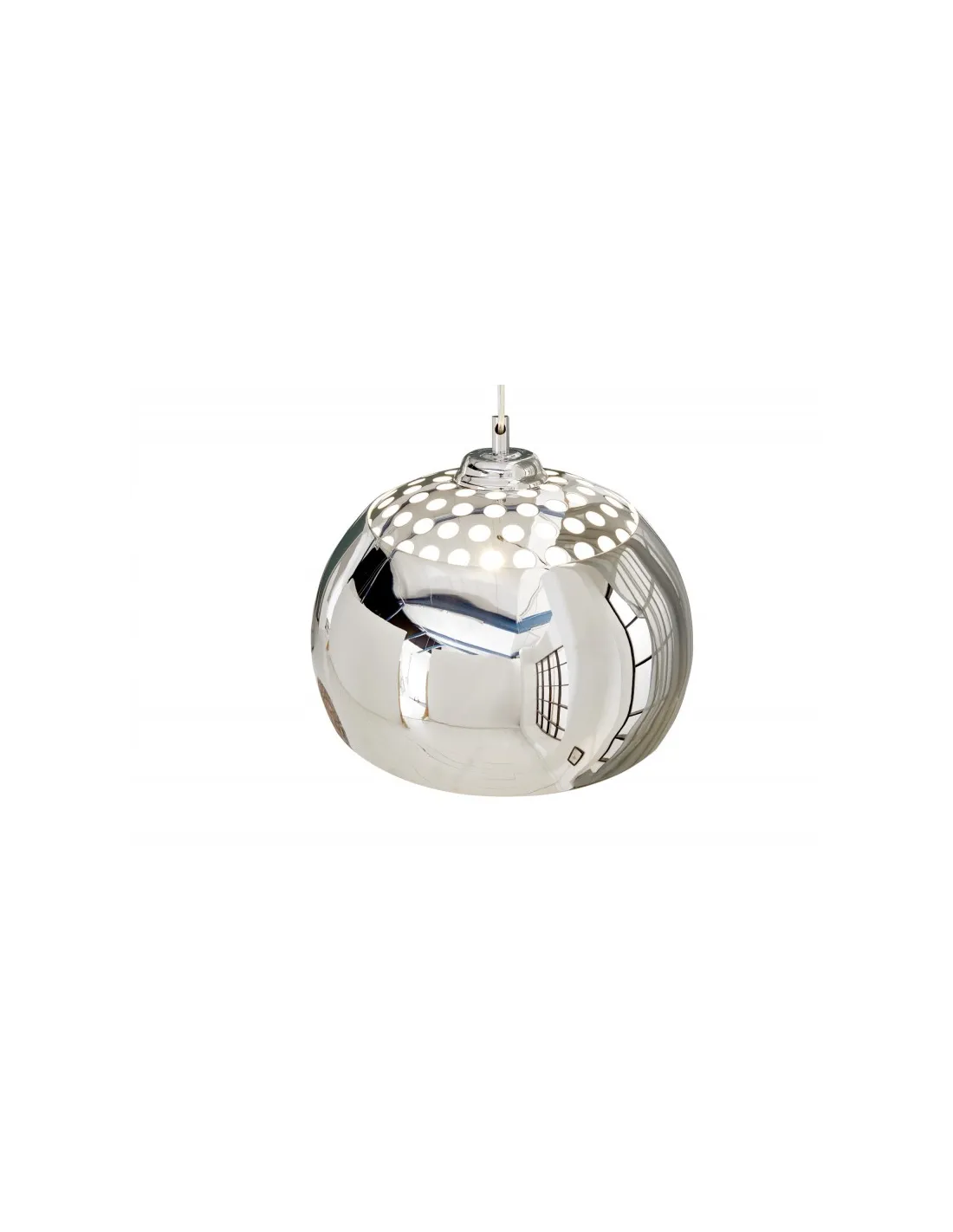Une lampe suspendue design boule en métal chromé d’une forme sphérique, et des gaines de câbles en plastique transparent parfaite pour une ambiance d’élégance intemporelle à votre intérieur !