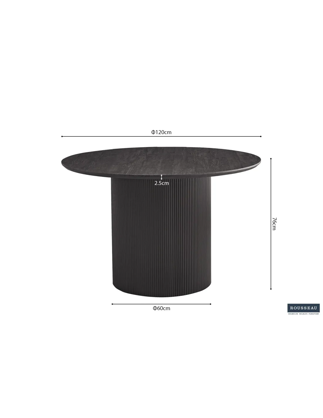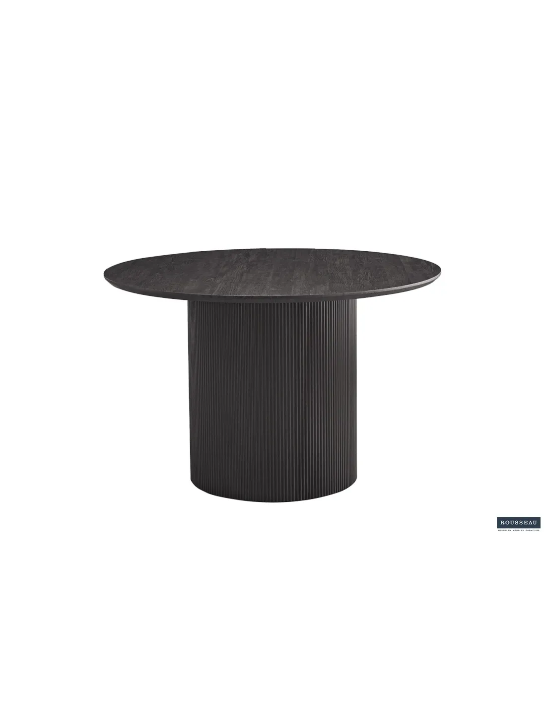 La table LAGOS 120 cm ronde décor brun foncé combine praticité et raffinement.