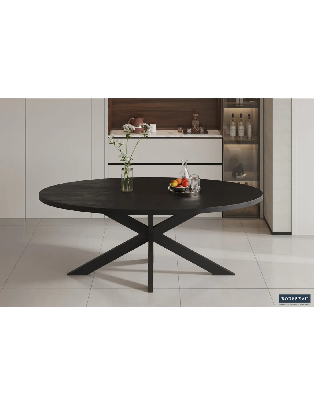 - Forme ovale : Le plateau ovale favorise une atmosphère conviviale et permet une circulation plus fluide autour de la table, sans angles vifs, ce qui la rend idéale pour les familles et les invités.