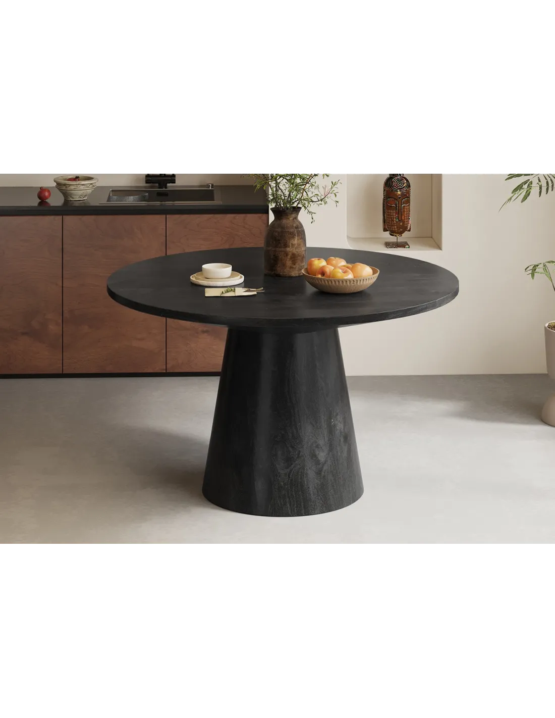 Table Ronde 'Tommy' 130 cm en Bois de Manguier Coloris Noir