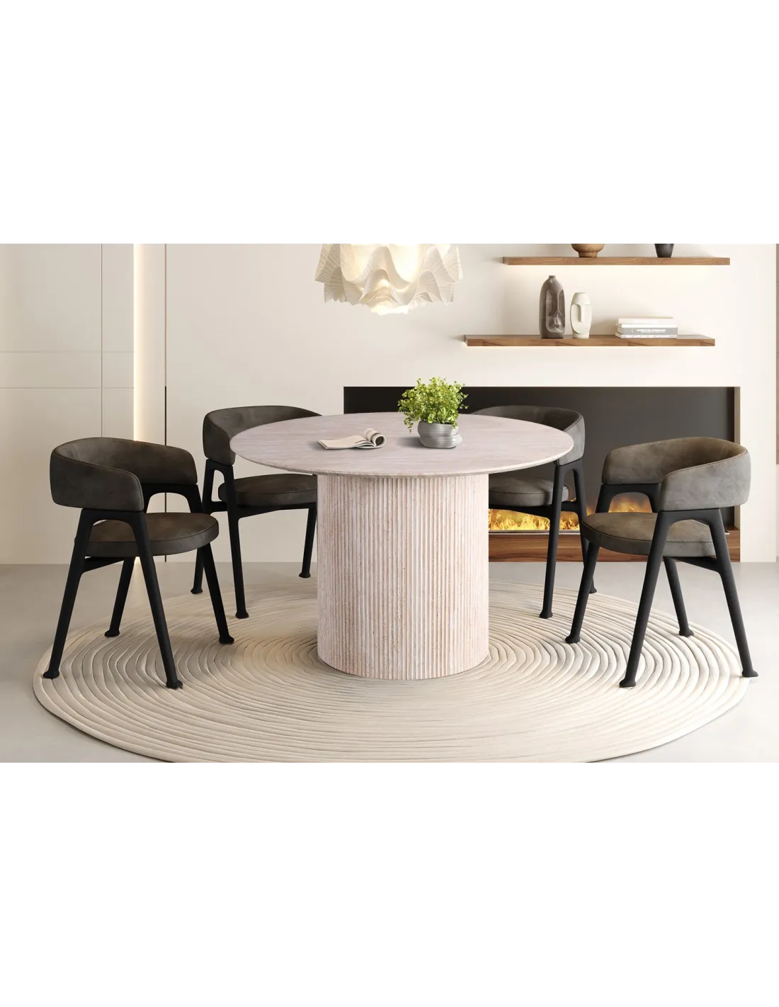 Apportez élégance et convivialité à votre salle à manger avec la table LAGOS 120 cm ronde. Son décor travertin beige effet pierre naturelle illumine votre intérieur tout en créant une ambiance chaleureuse et raffinée.
