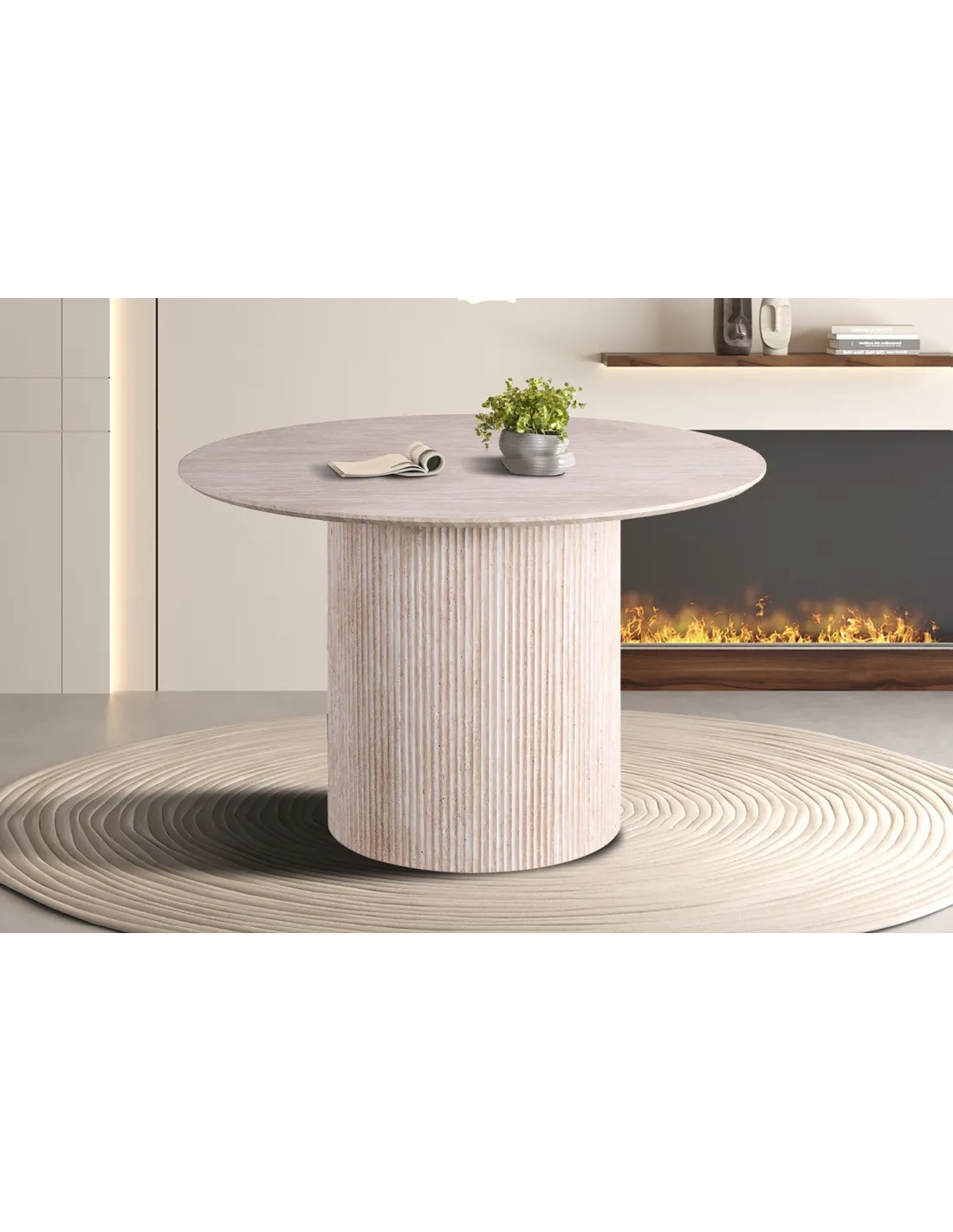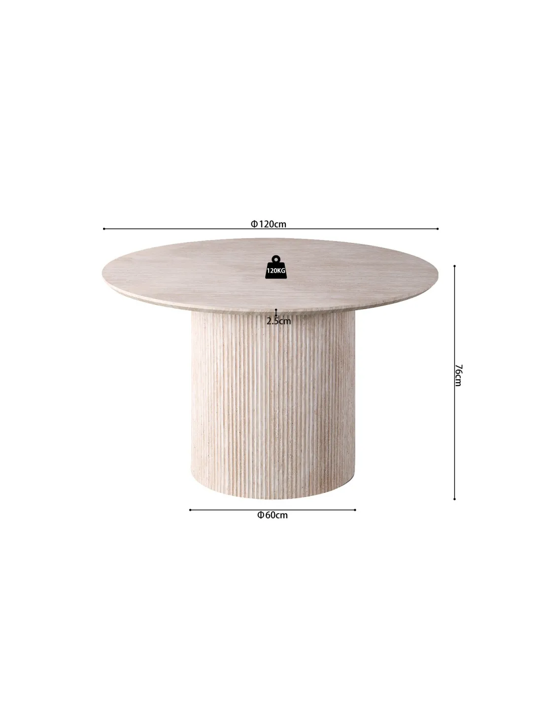 Table LAGOS 120 cm Ronde – Décor Travertin Beige