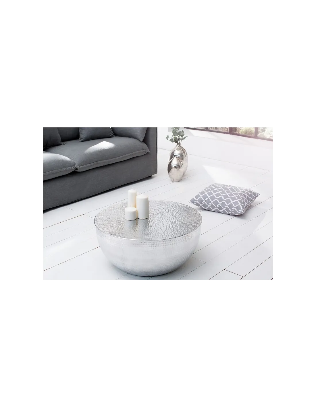 Agrémenter à merveille votre séjour à l'aide de cette magnifique table coloris argenté, parfaitement réalisée à la main à partir d'aluminium avec un design raffiné ! Très pratique et esthétique avec une forme ronde, elle apportera à votre salon un cachet luxueux et plein de glamour ! Donc n'hésitez pas à profitez cette jolie table basse ayant une qualité excellente et un prix incroyable !