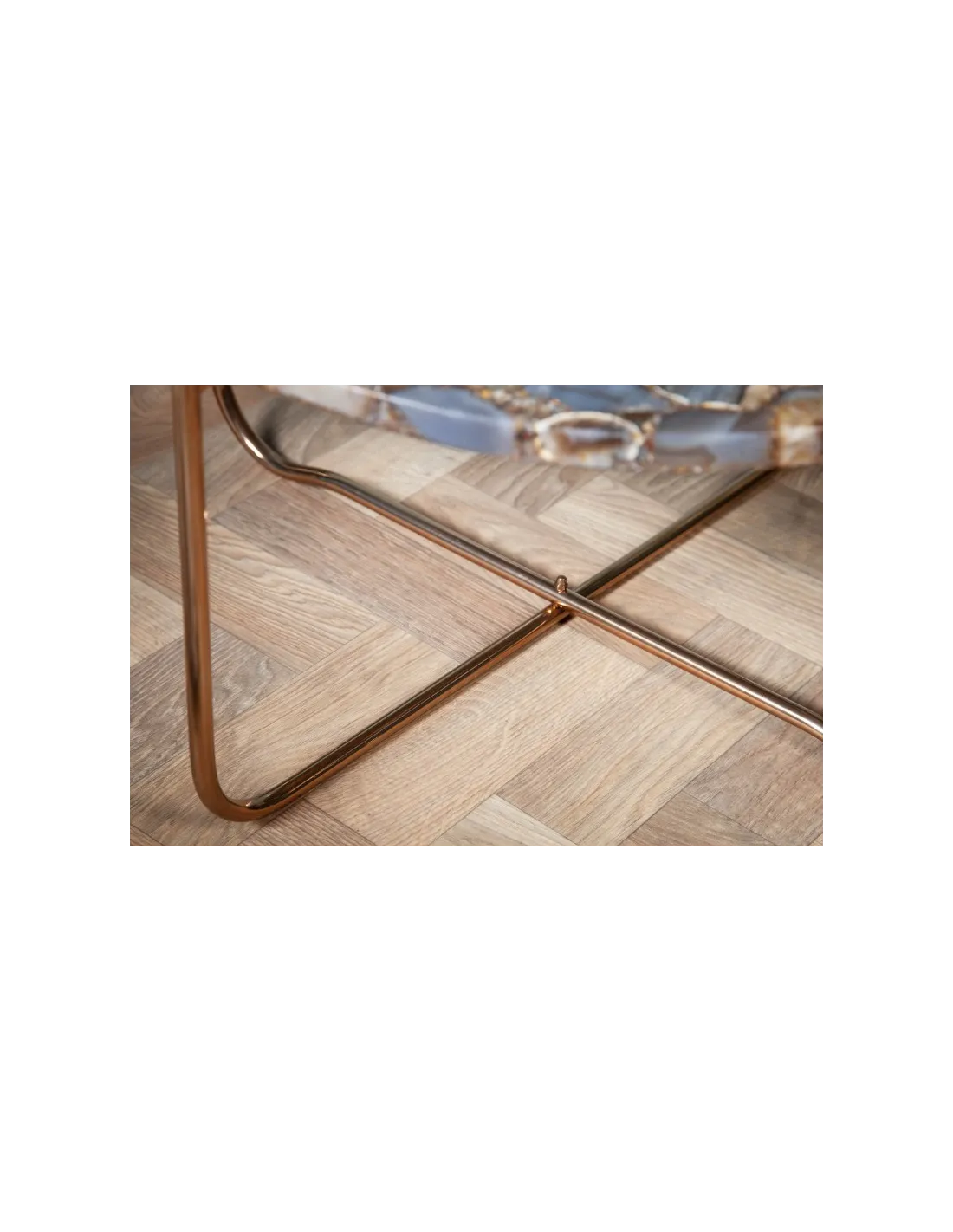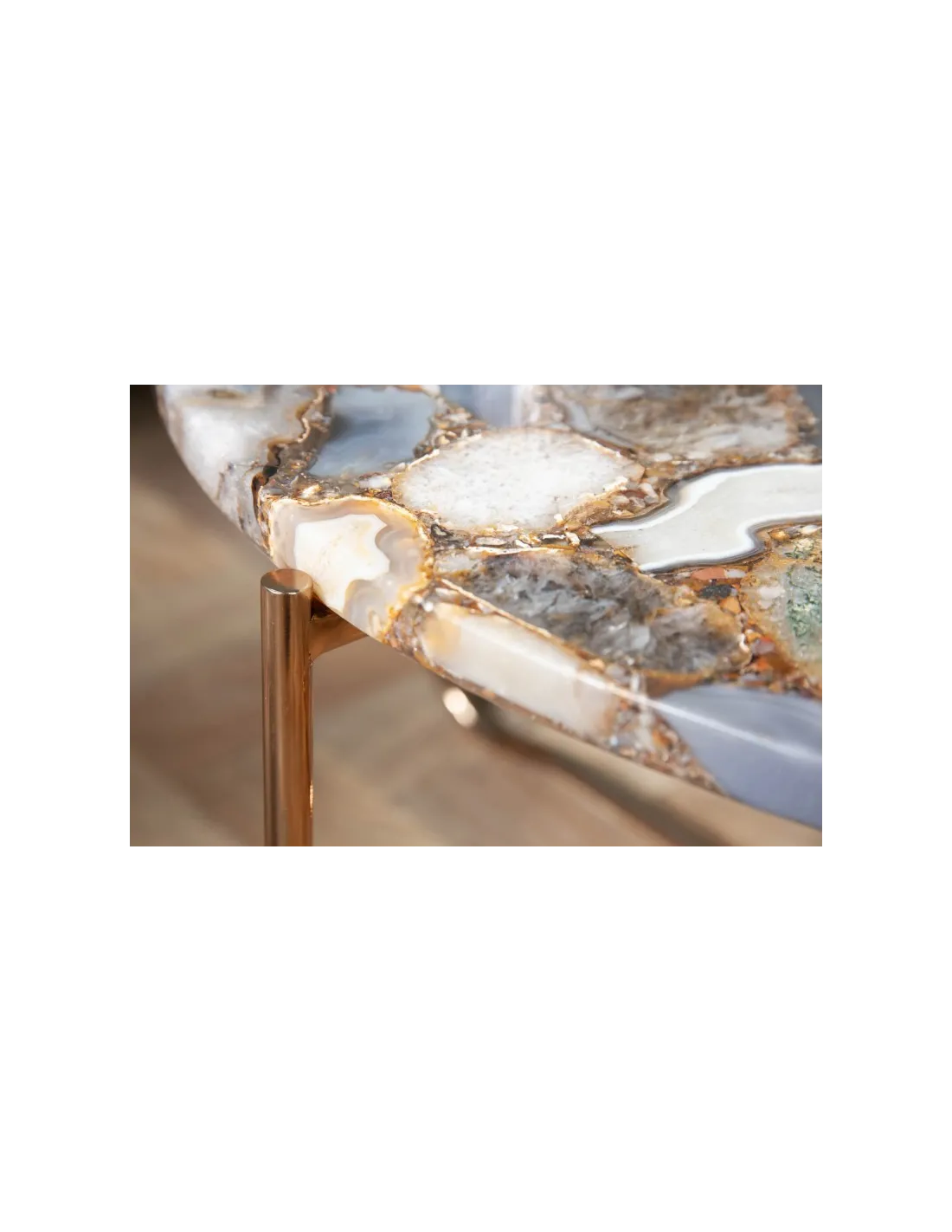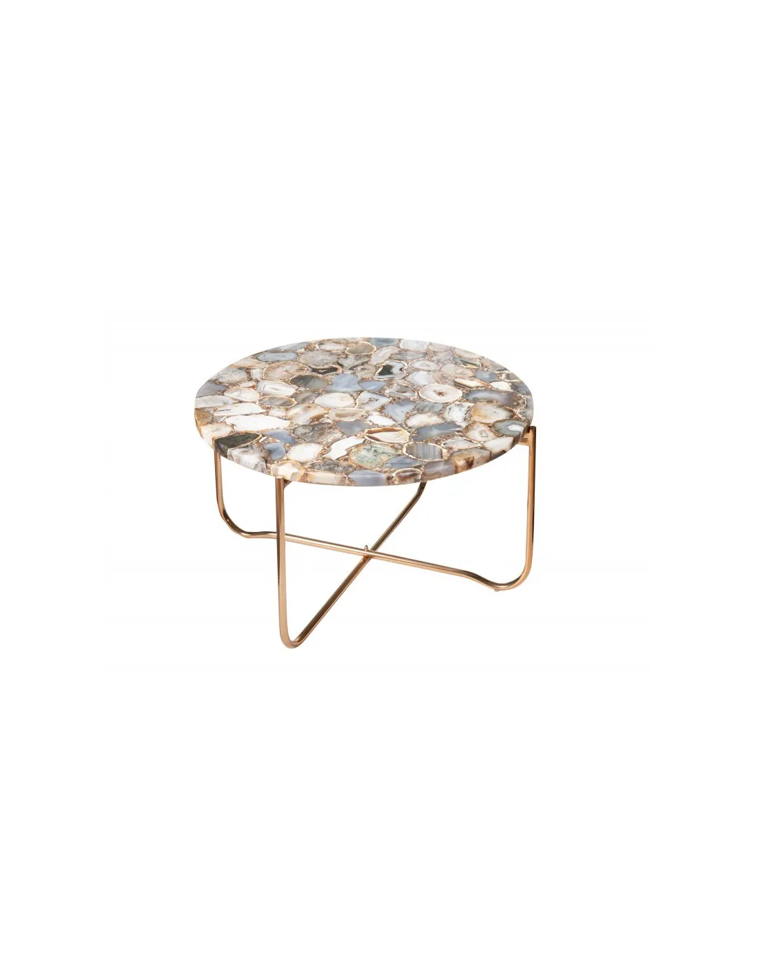 Table basse design ronde en agate multi-couleur avec piétement pliable en métal