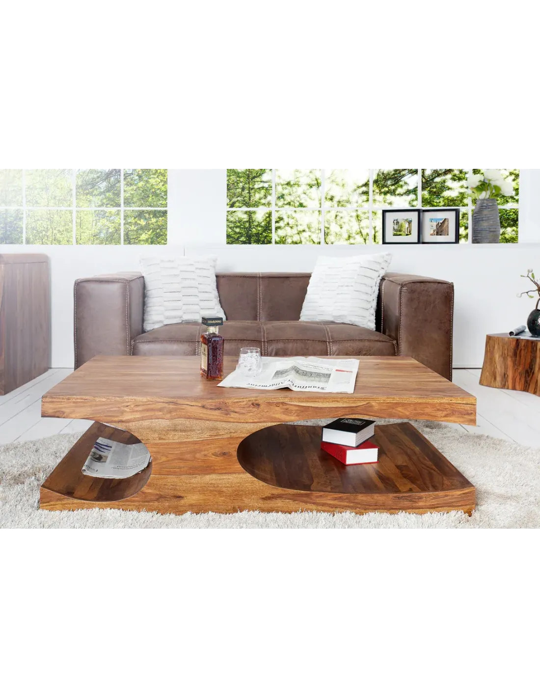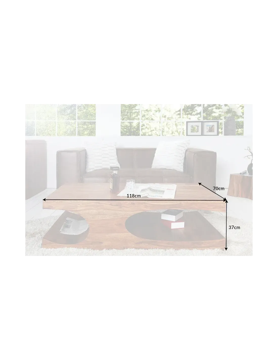 Table Basse 118cm GOA en Bois de Sheesham - Élégance Naturelle et Design Moderne