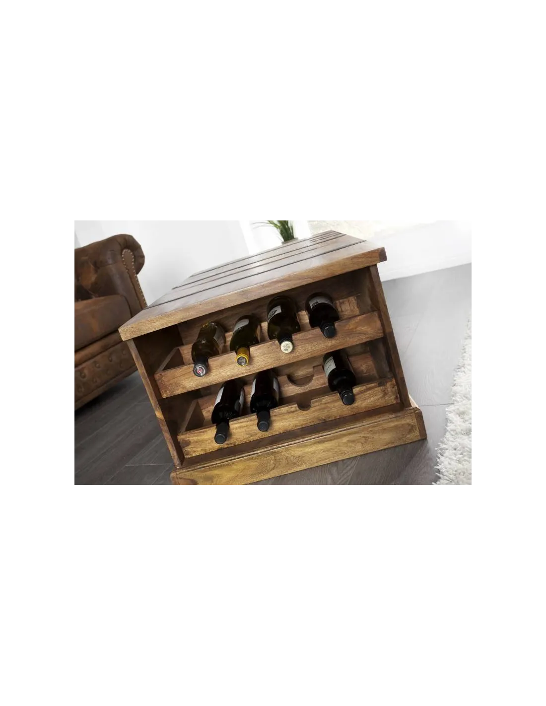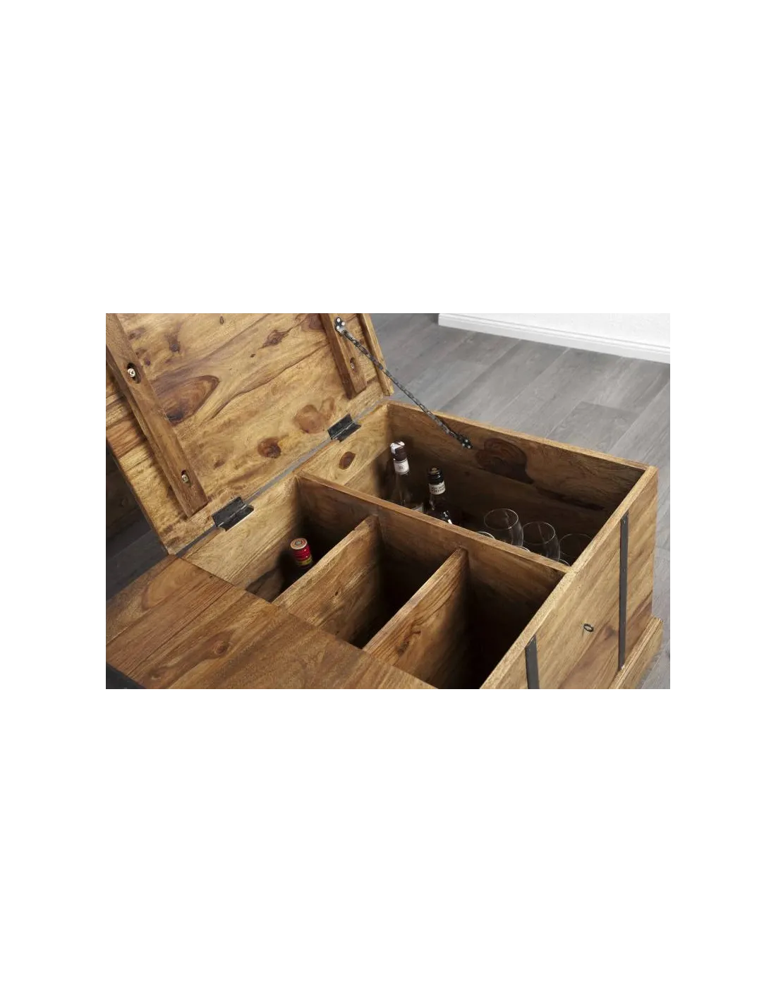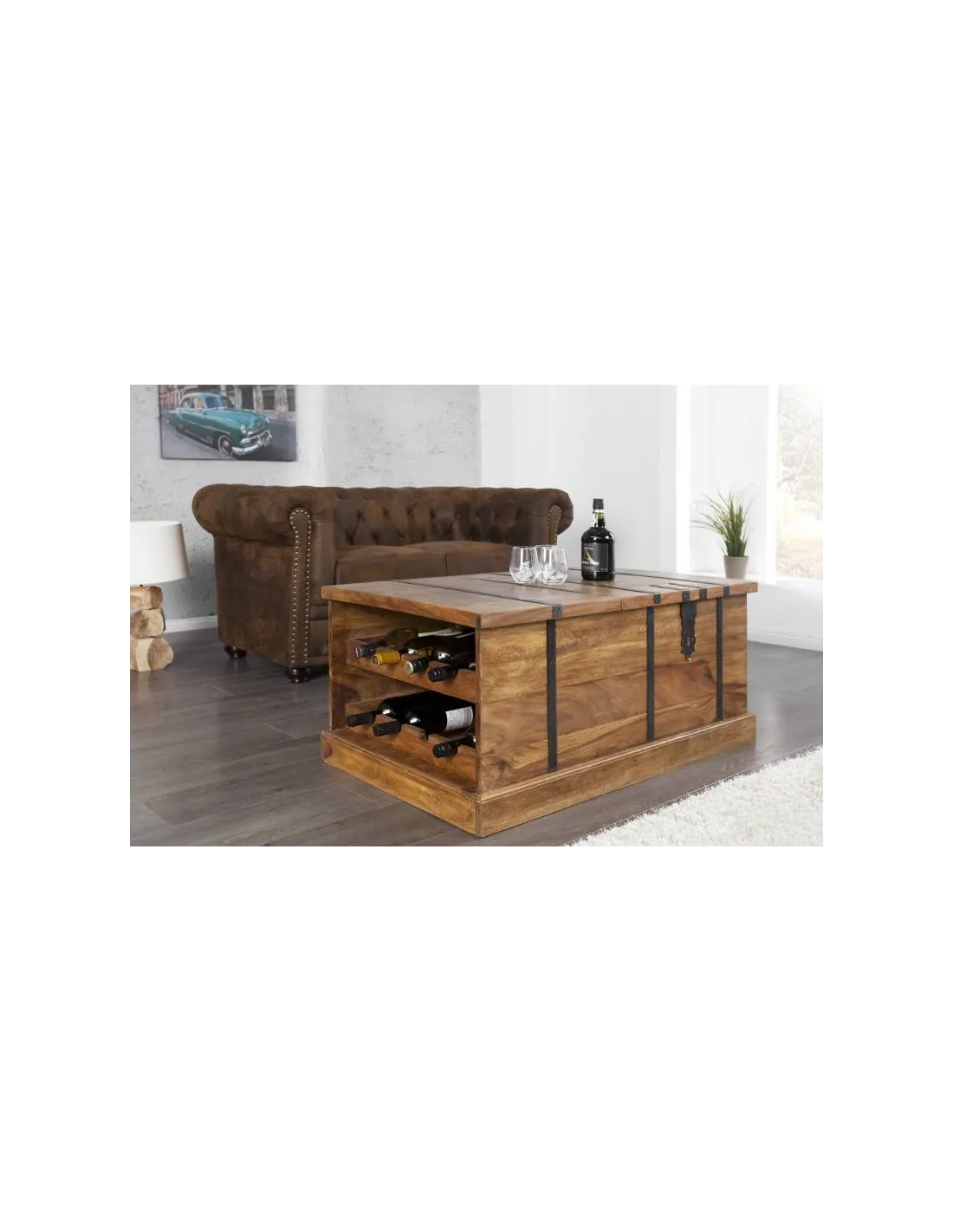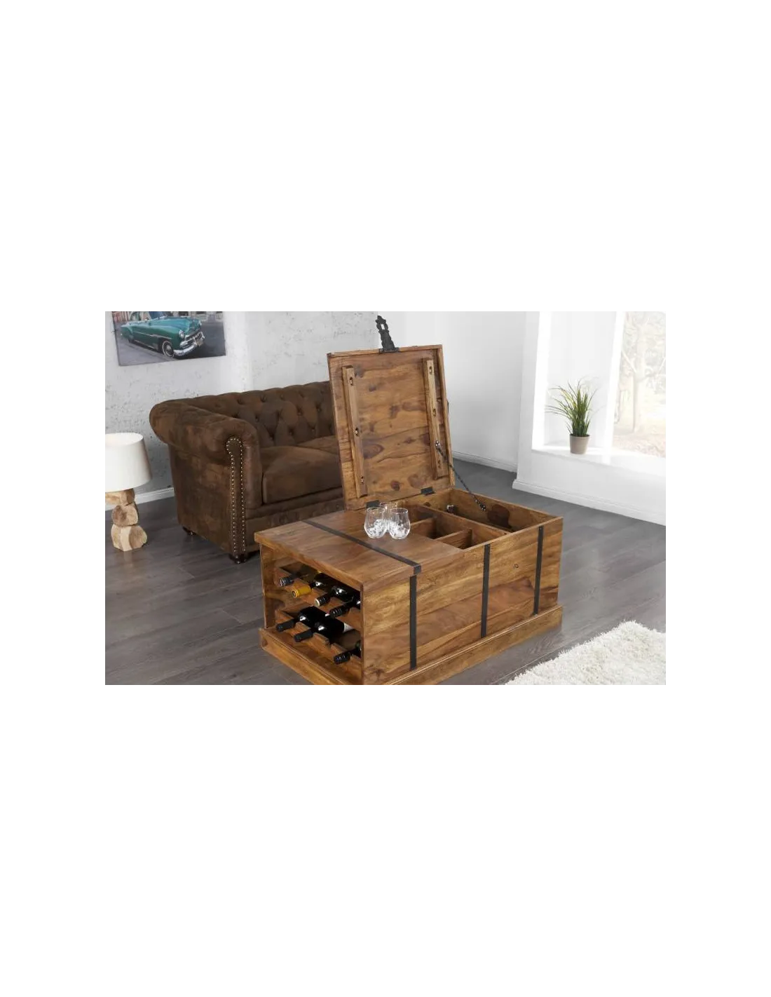 Affinez votre salon avec cette table exceptionnelle! Avec rangement décoratif pour vos bouteilles de vin et beaucoup d'espace de stockage grâce aux compartiments internes