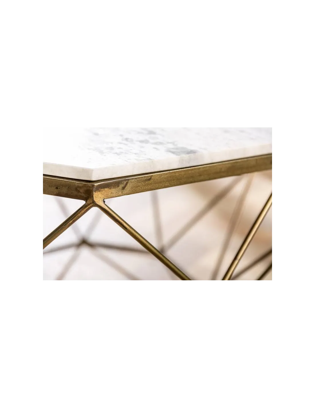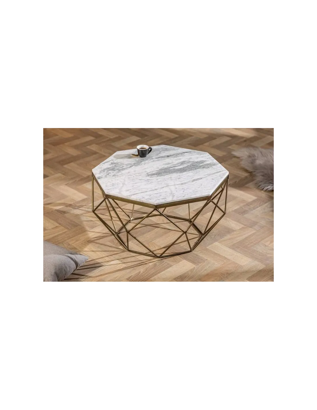 Une table basse chic et de style rétro sublimera magnifiquement votre salon ! La solidité et l'usage seront au rendez-vous, grâce au structure bien faite en marbre et en métal de premier choix coloris blanc et laiton de bonne qualité ! Assez pratique et esthétique, elle apportera au salon un aspect très chic et moderne, à s'intégrera harmonieusement avec tout meuble de style tendance ou classique, et cela à un prix adorable !