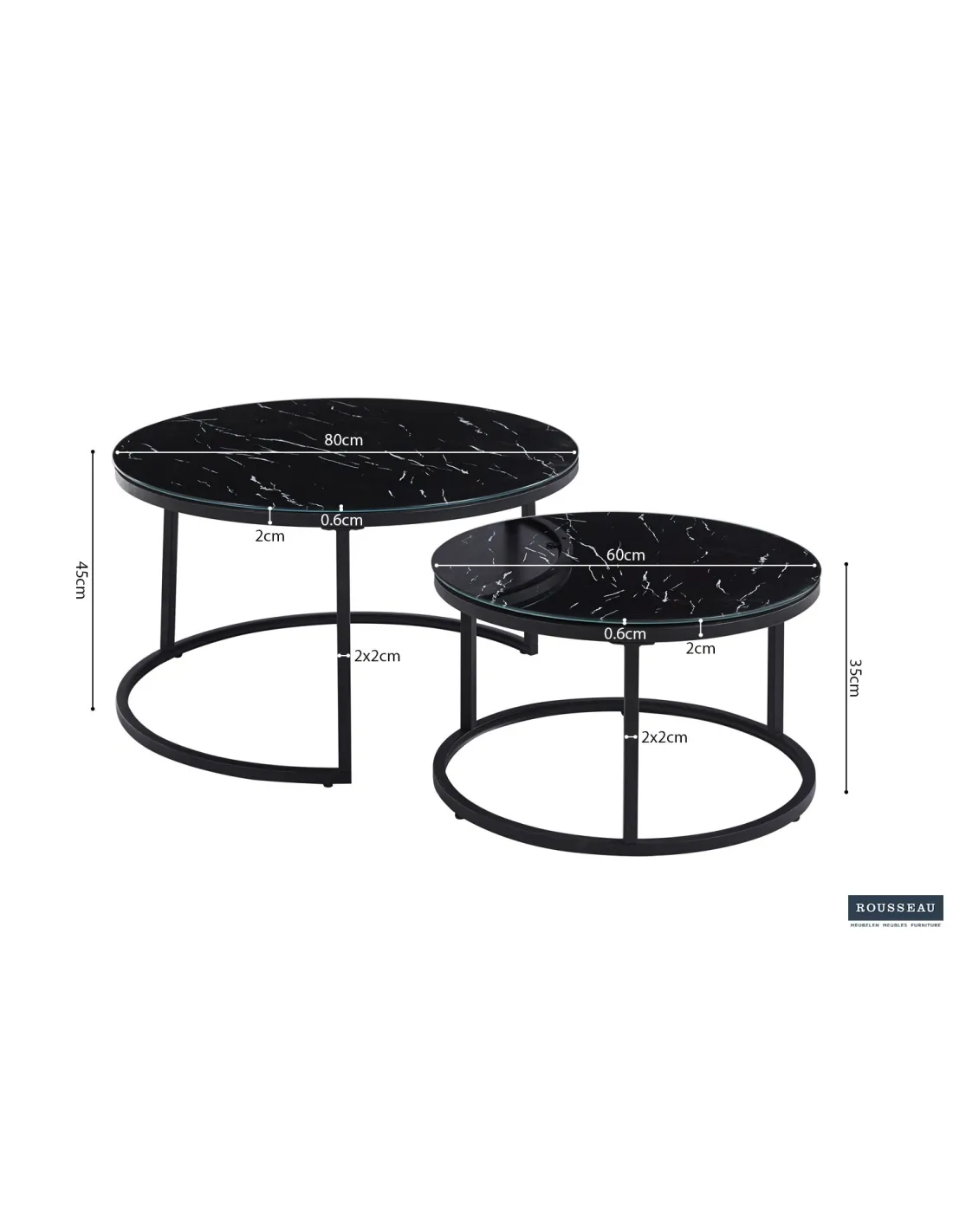 Dimensions des petites table : 35 x 60 x 60 cm (H x L x P)