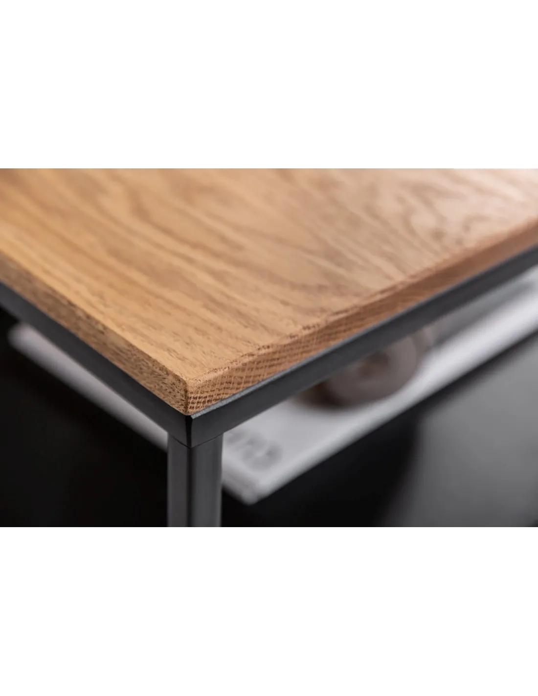 Le mélange du bois de chêne naturel et du cadre en métal noir crée un style industriel élégant qui s'intègre parfaitement dans une variété de décors intérieurs.