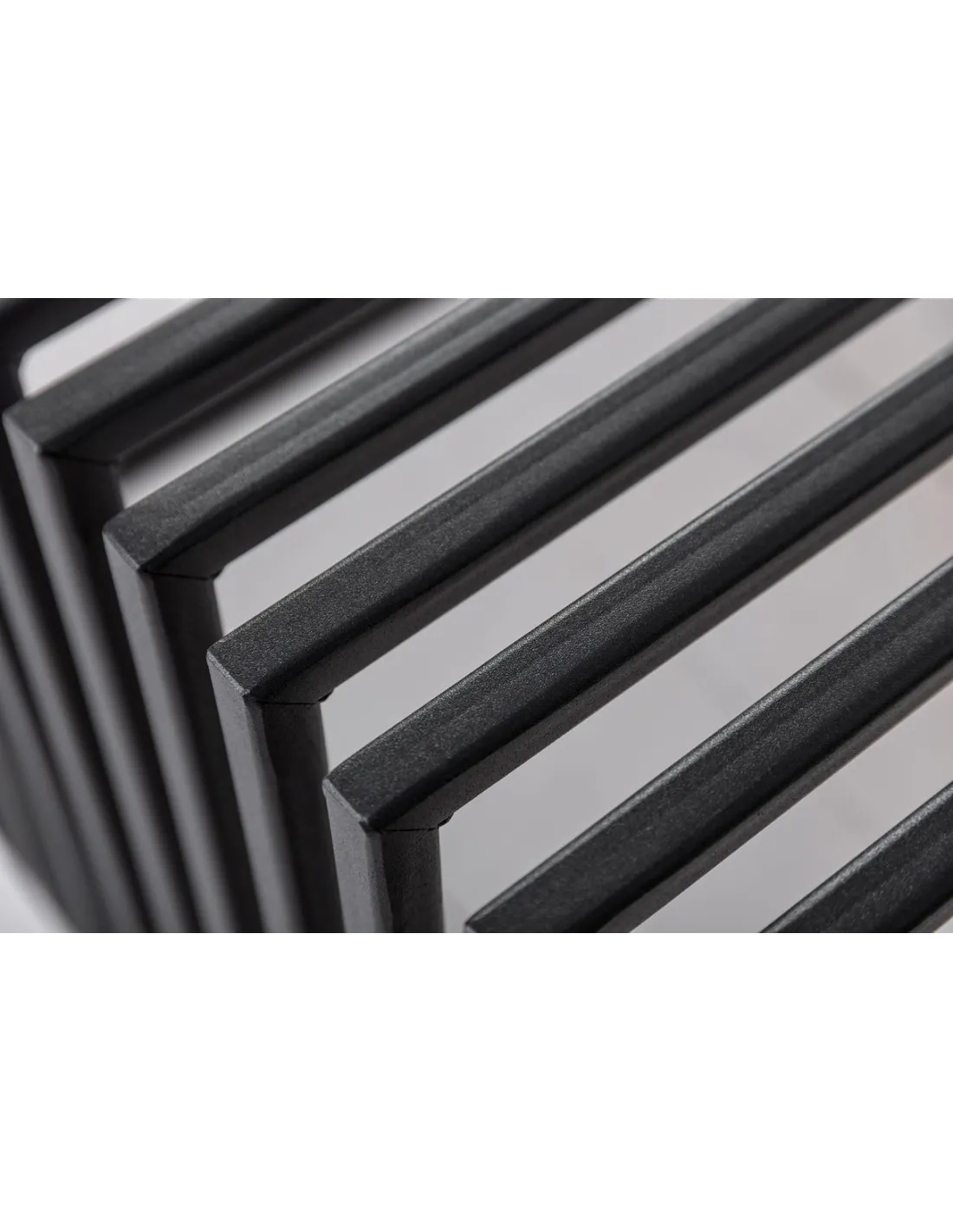 Le cadre en métal noir ajoute une note industrielle au design, créant un contraste visuel intéressant avec le bois massif. Il garantit également la stabilité de la table.