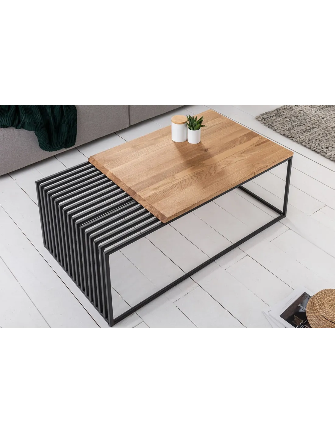 Cette table basse offre une expérience d'utilisation exceptionnelle. Le plateau en bois de chêne massif est non seulement solide, mais il apporte également une touche chaleureuse à votre espace. Il offre suffisamment d'espace pour poser des boissons, des collations, des livres, ou pour mettre en valeur des objets de décoration.