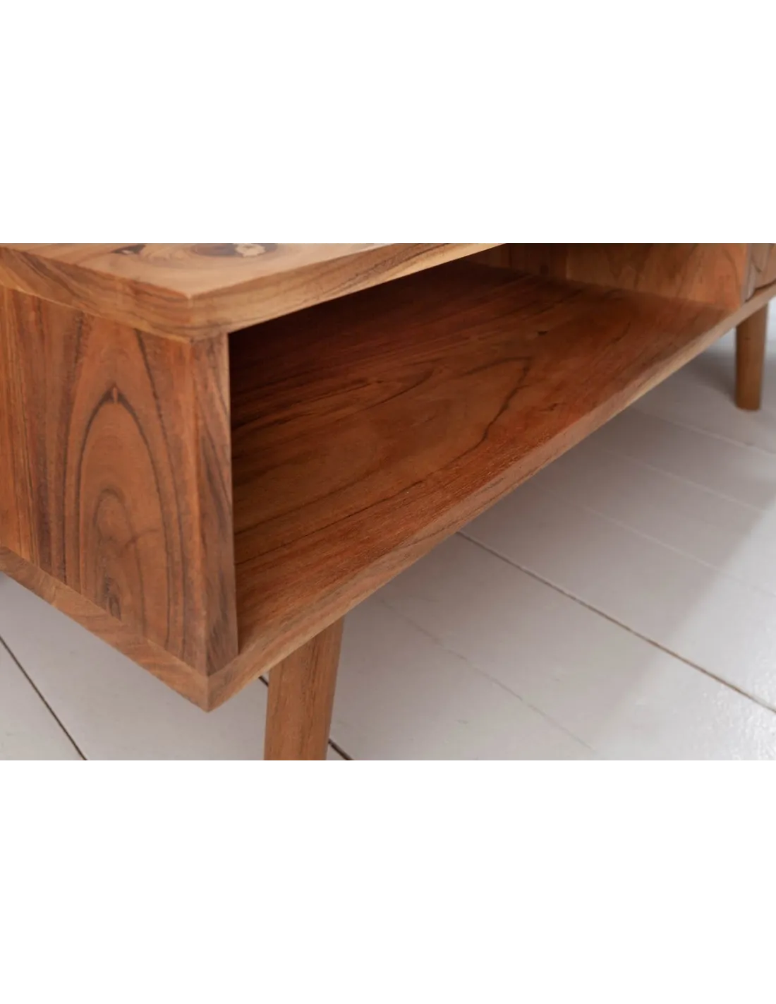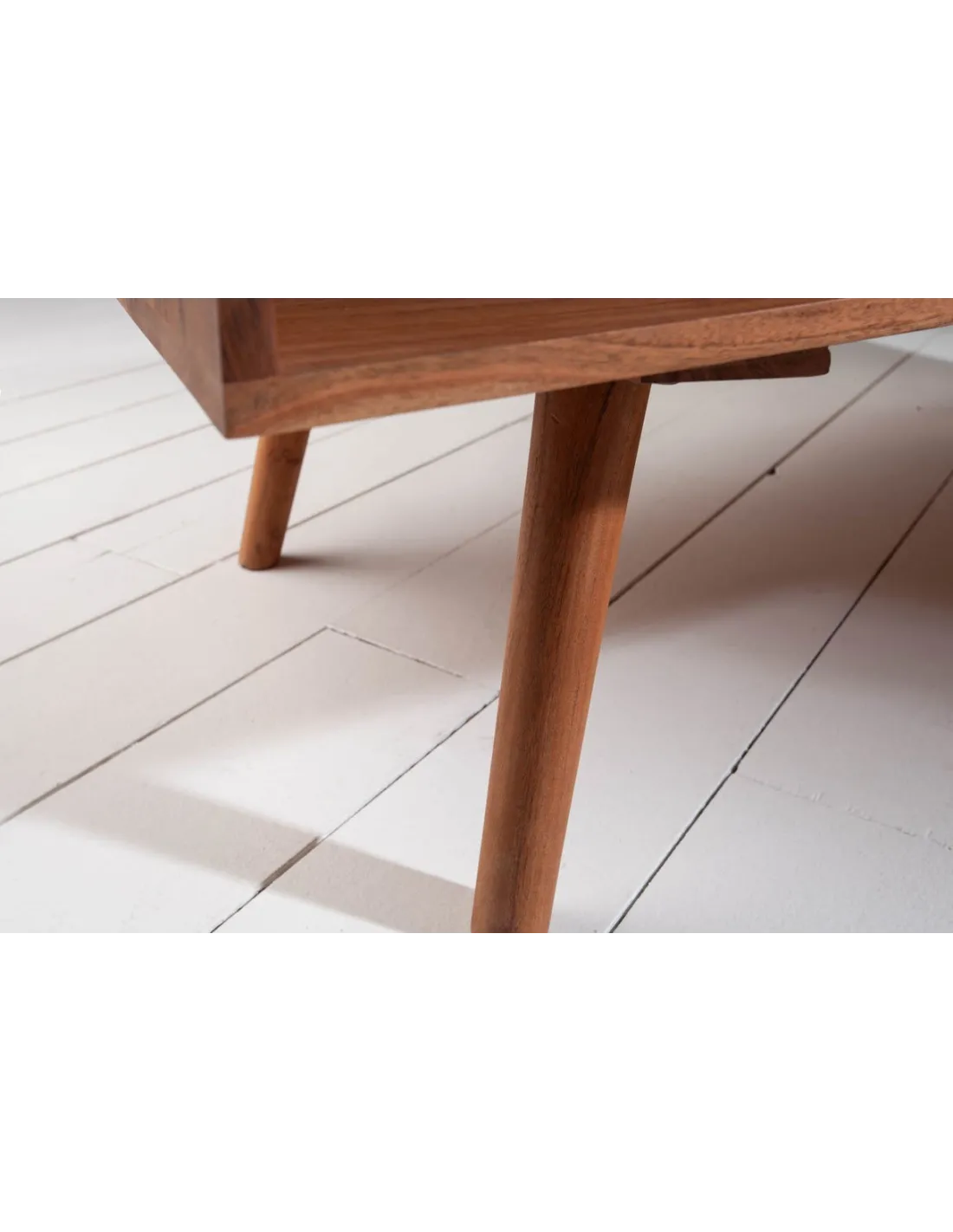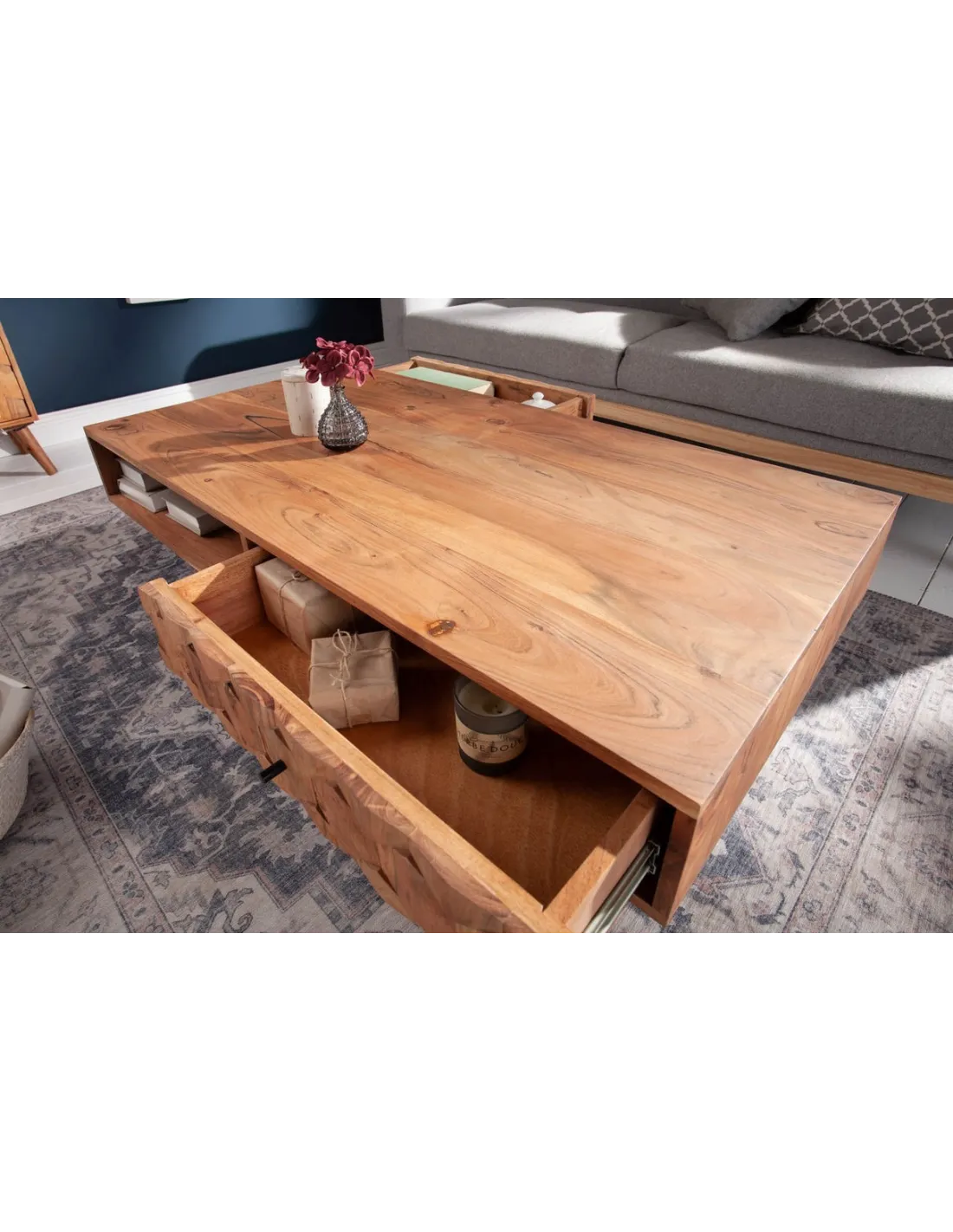 Table basse 100 cm style scandinave avec 2 tiroirs en bois massif acacia