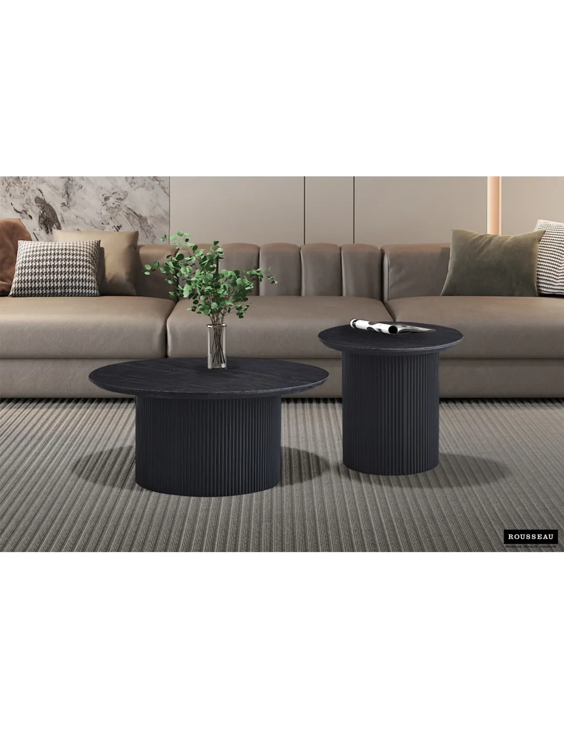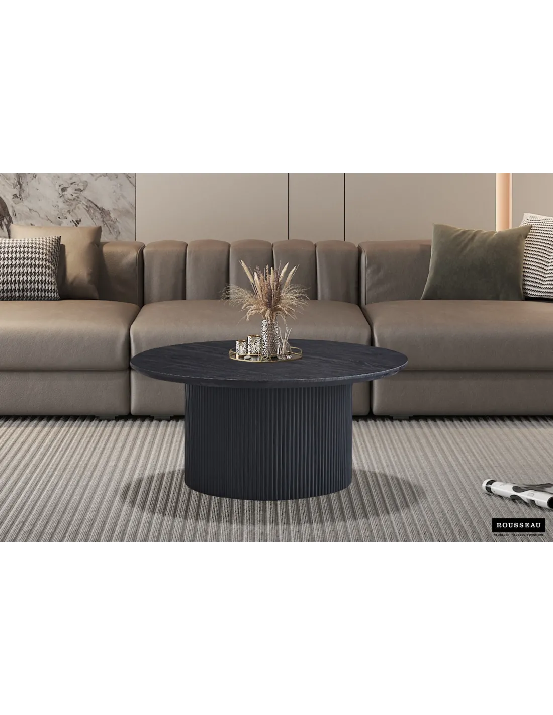Avec sa forme ronde harmonieuse et son fini brun profond, la table basse LAGOS séduit par son allure sobre et sophistiquée.