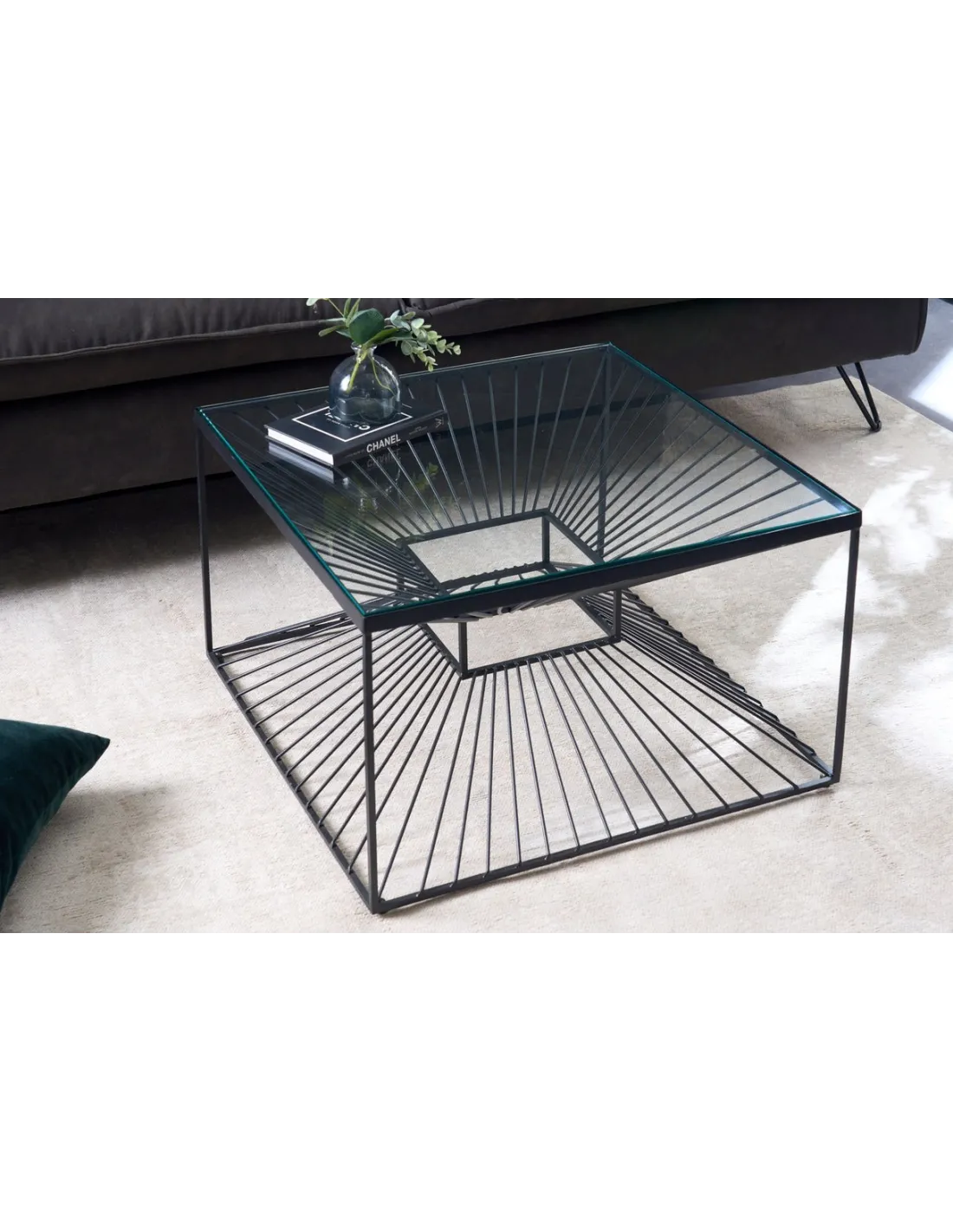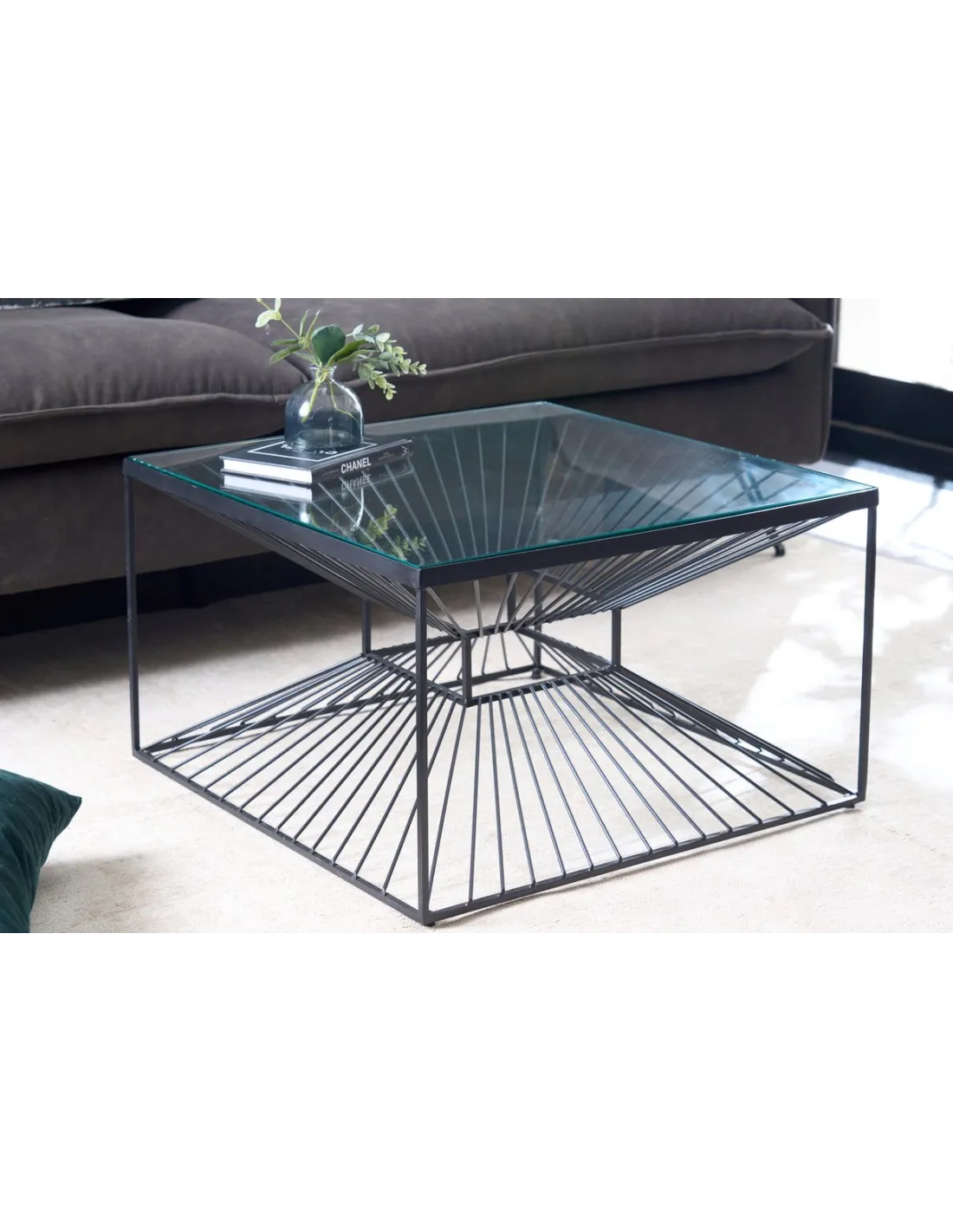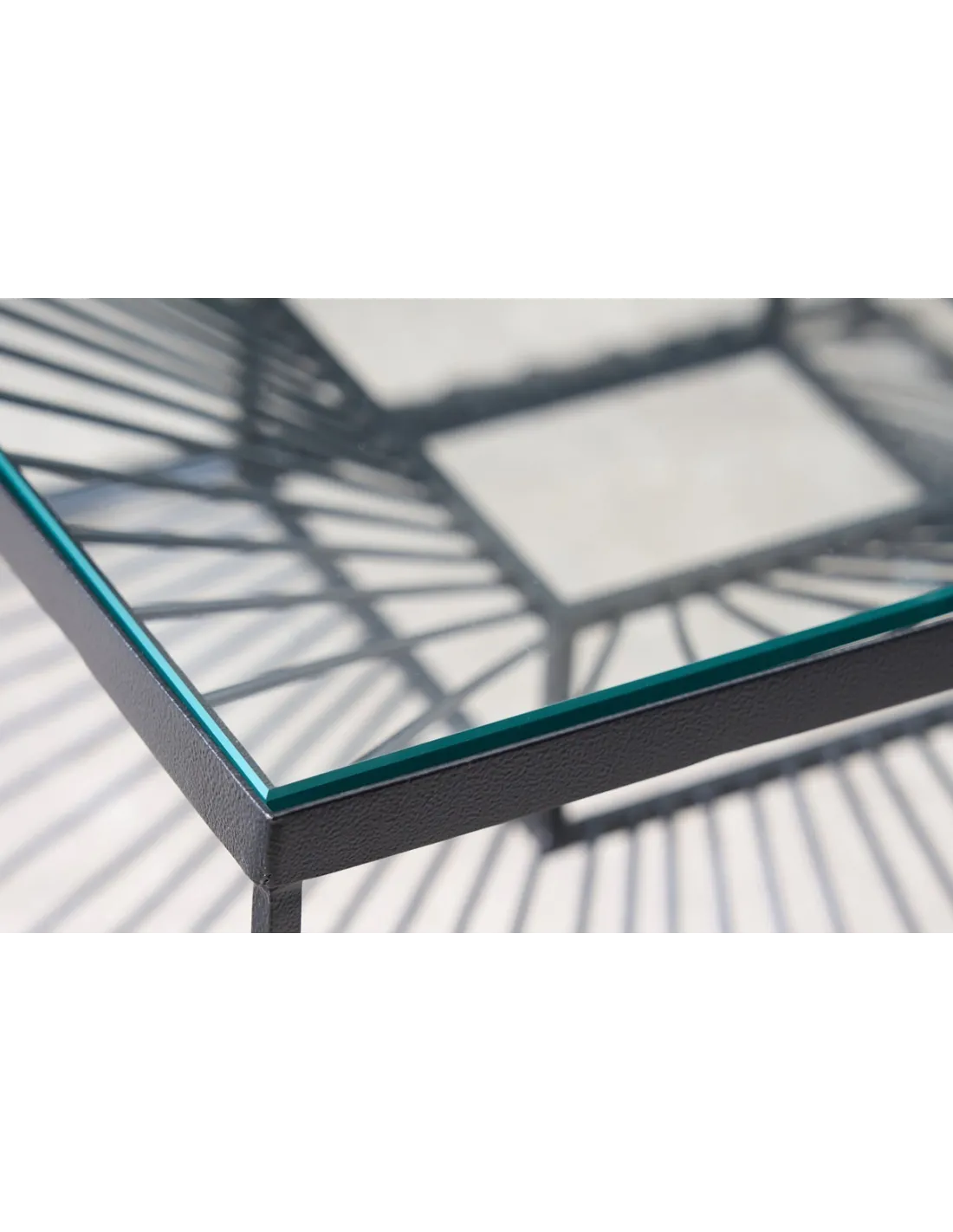 Son plateau en verre transparent de haute qualité laisse passer la lumière, donnant une impression de légèreté et d’espace, tandis que le piètement en fer noir thermolaqué apporte une note industrielle chic.
