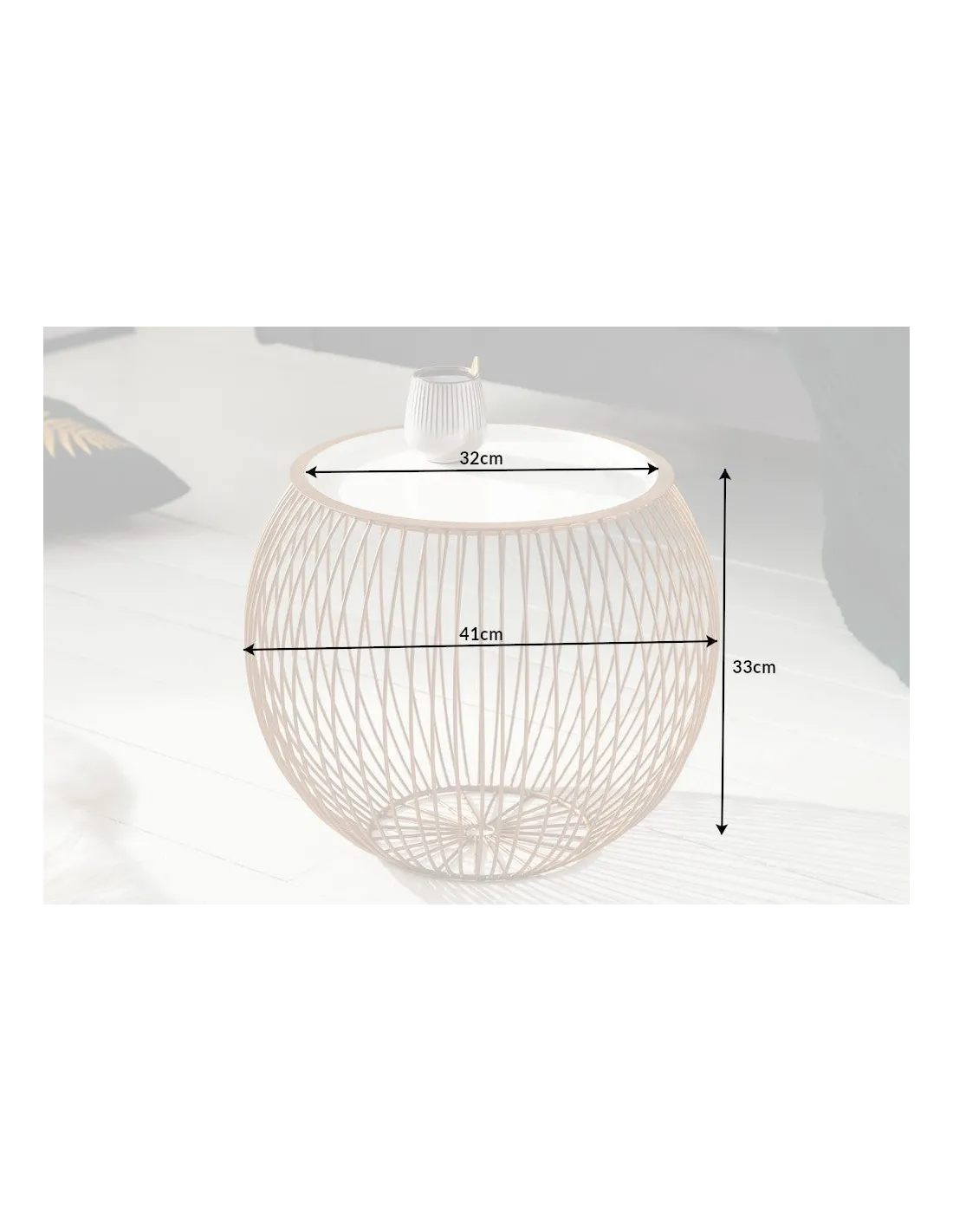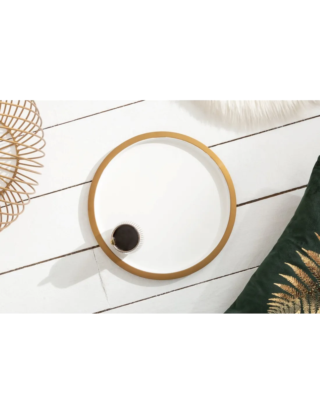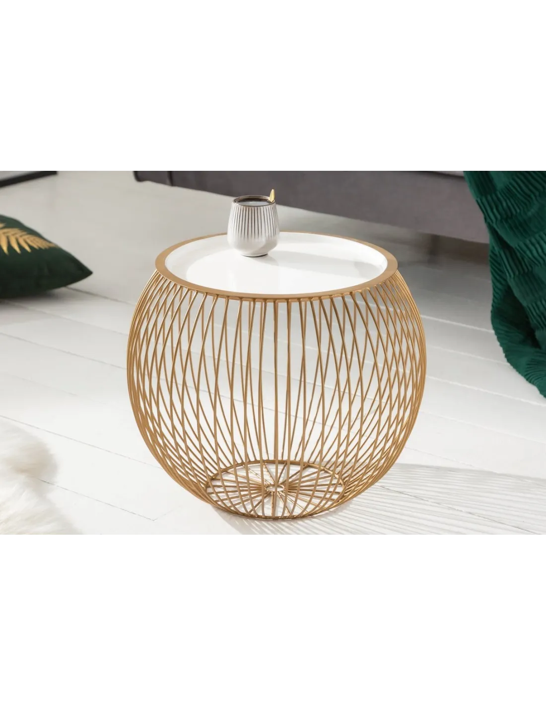 - Un plateau amovible blanc qui contraste harmonieusement avec la base dorée, pour un rendu épuré et contemporain.