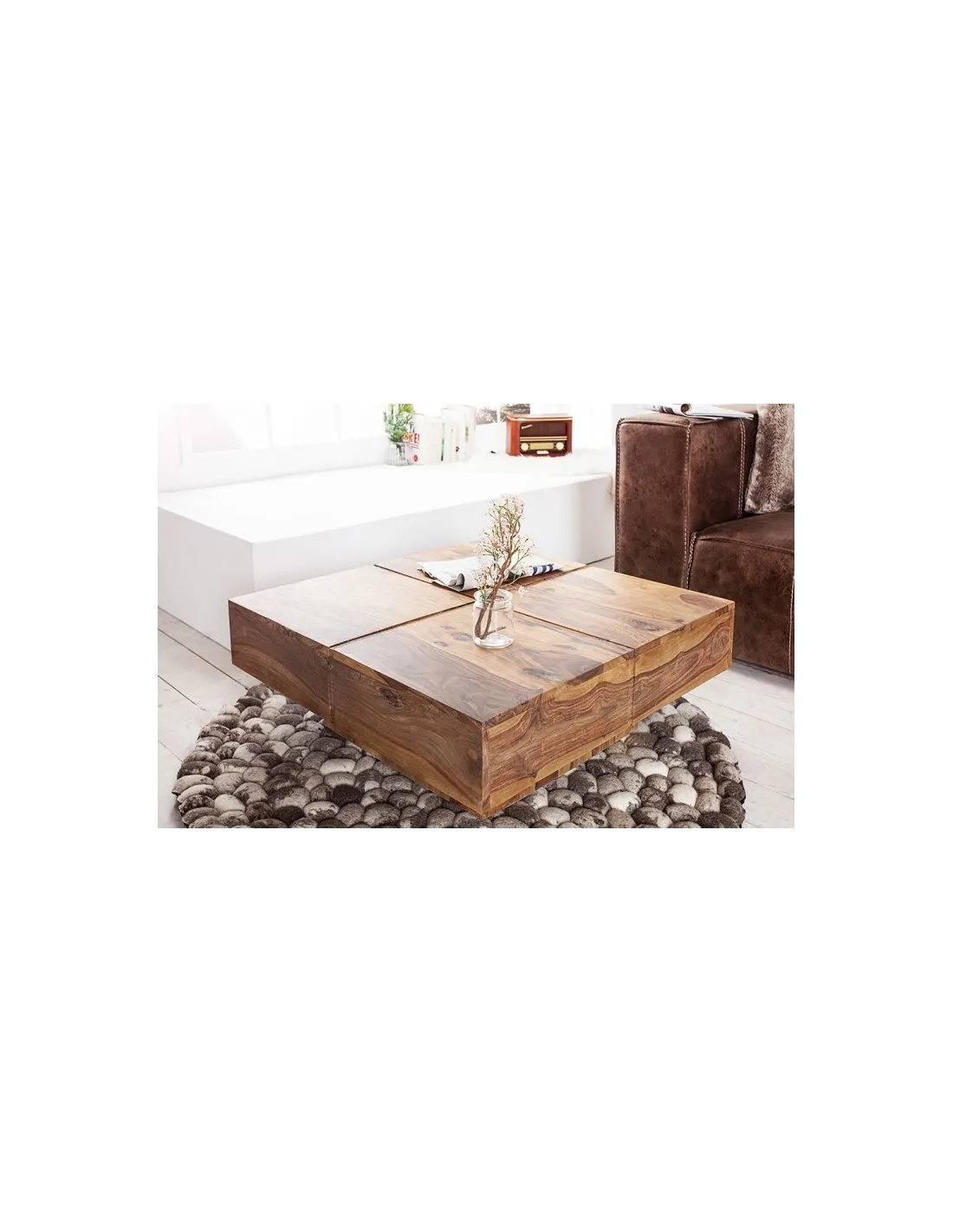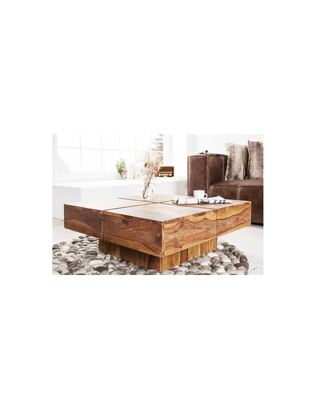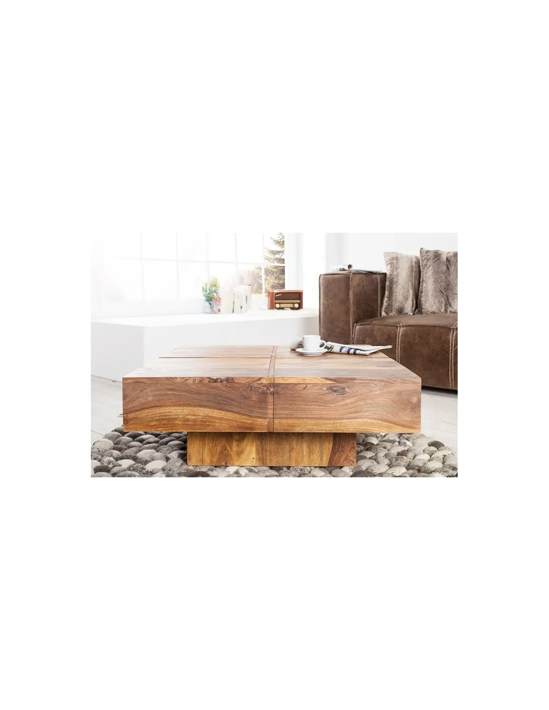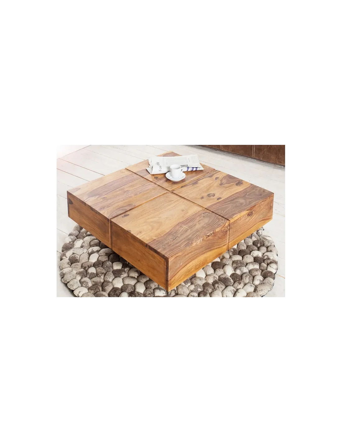 Invitez la chaleur du bois massif et le charme de l’artisanat dans votre salon avec la table basse BOLT 70 cm.