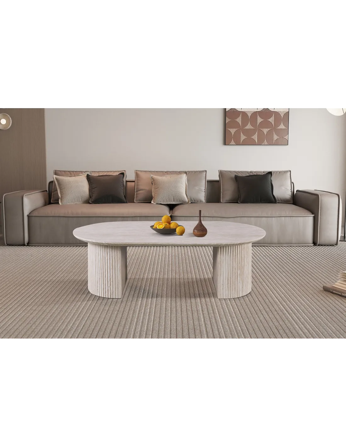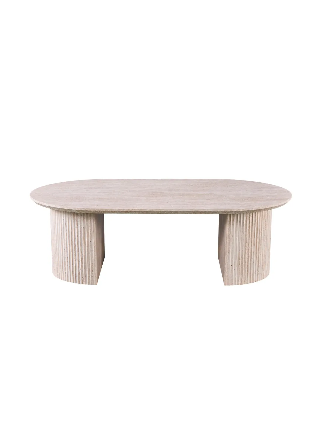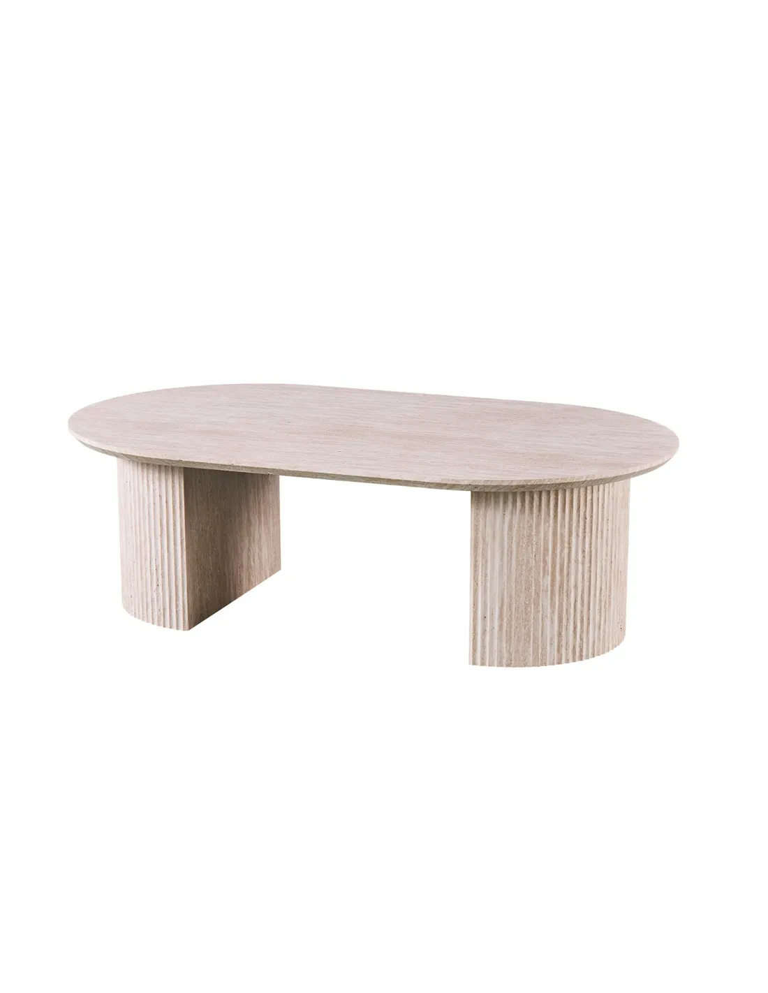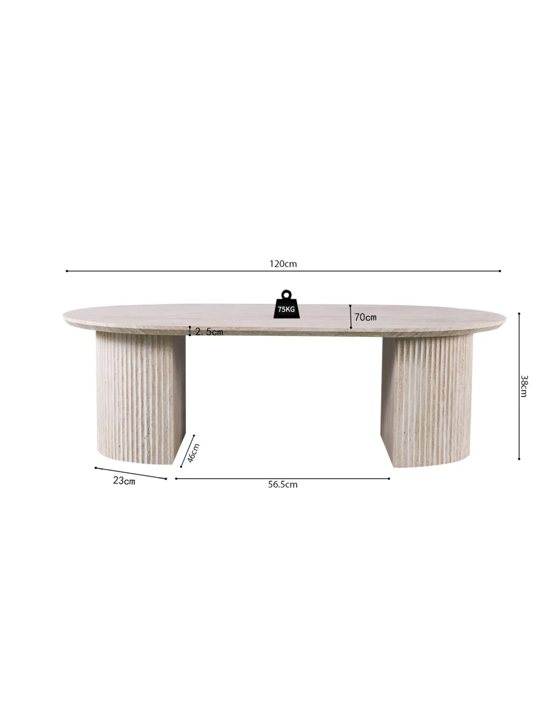 Table Basse LAGOS 120 cm Ovale – Décor Travertin Beige
